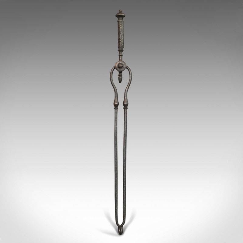 Antique Fire Kerb, Companion Tongs, English, Iron, Fireside Set, Victorian, 1850