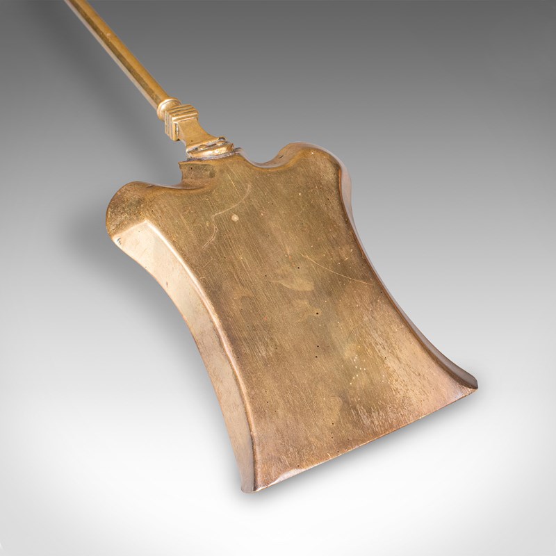 Antique Fire Tool Set, English, Brass, Shovel, Tongs, Poker, Victorian, C.1870