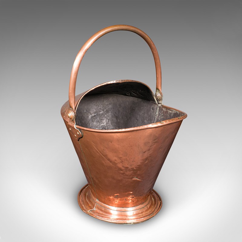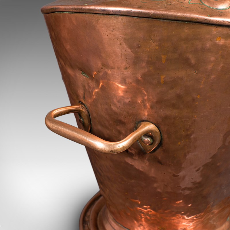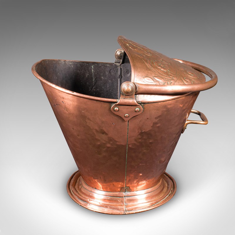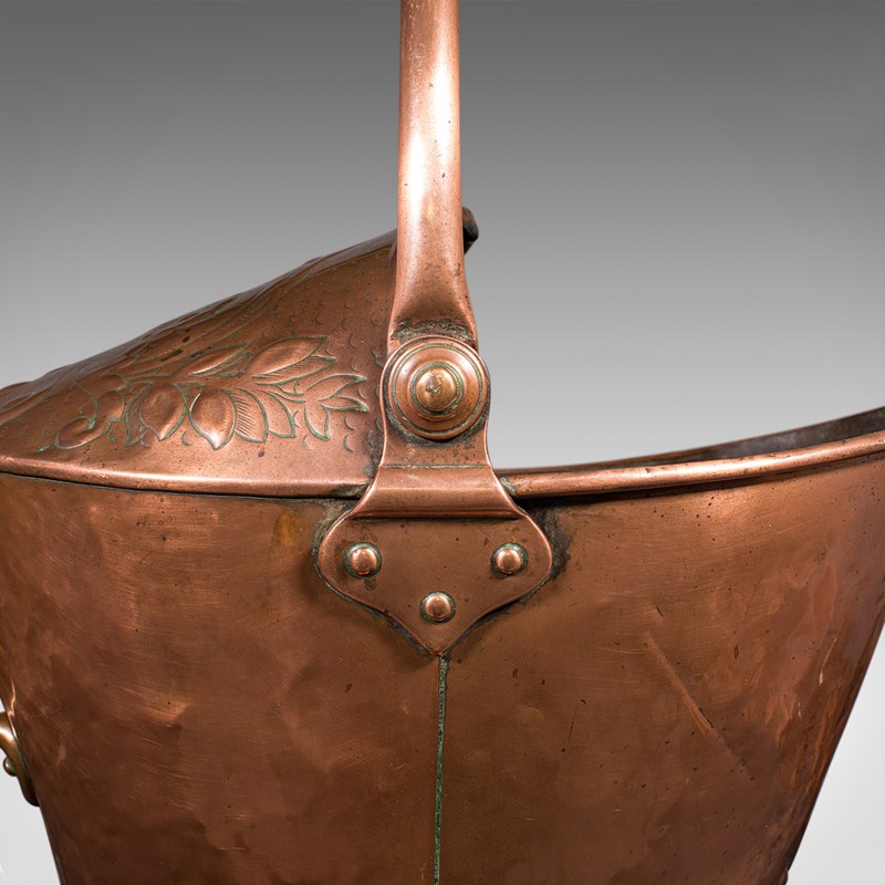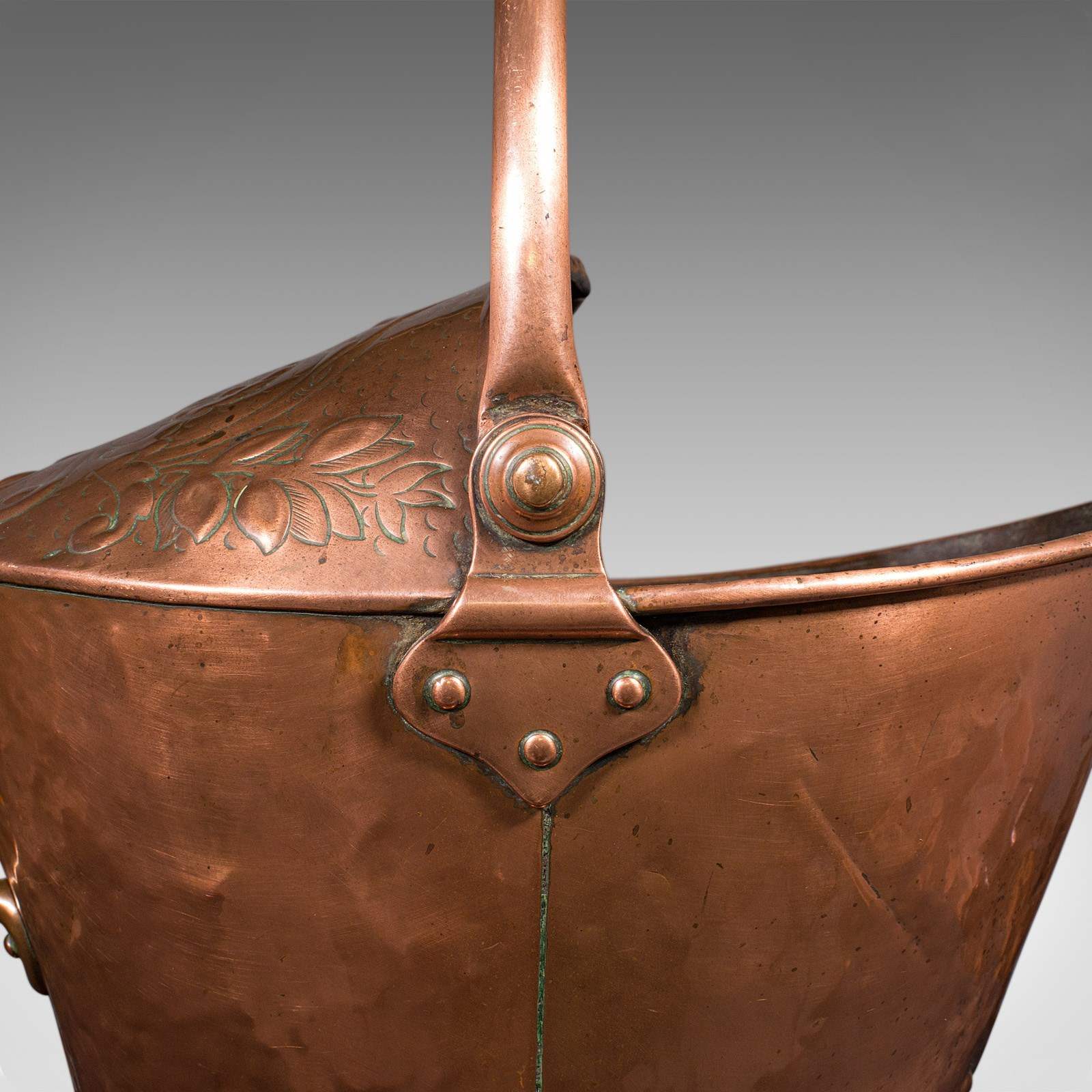 Antique Fireplace Coal Scuttle, English Copper, Basket, Art Nouveau, Victorian