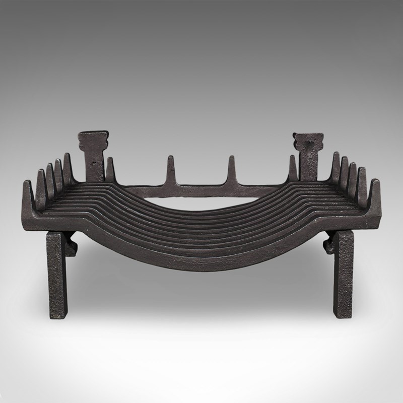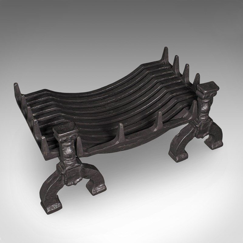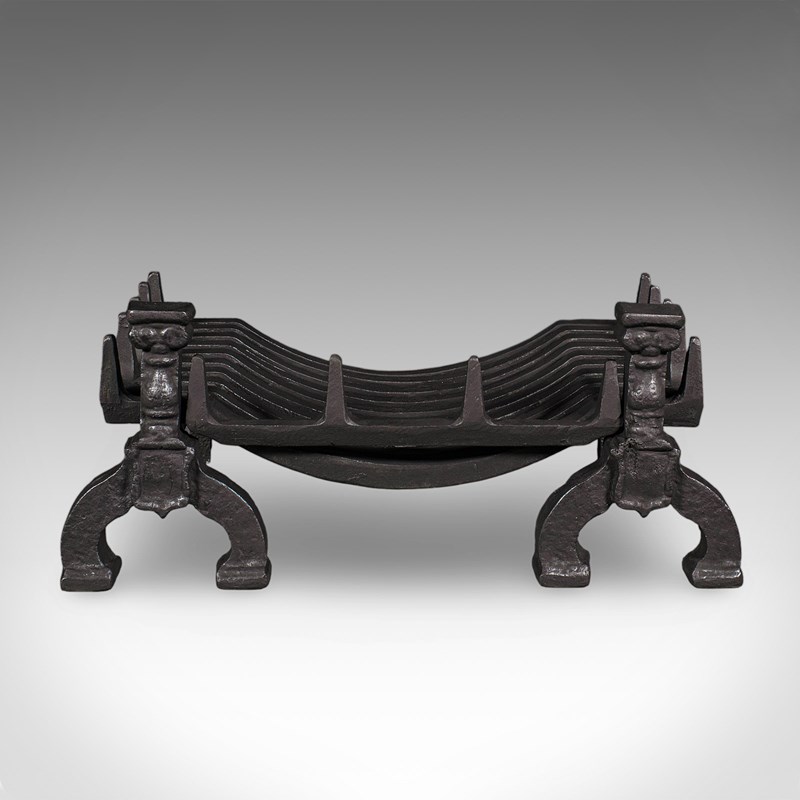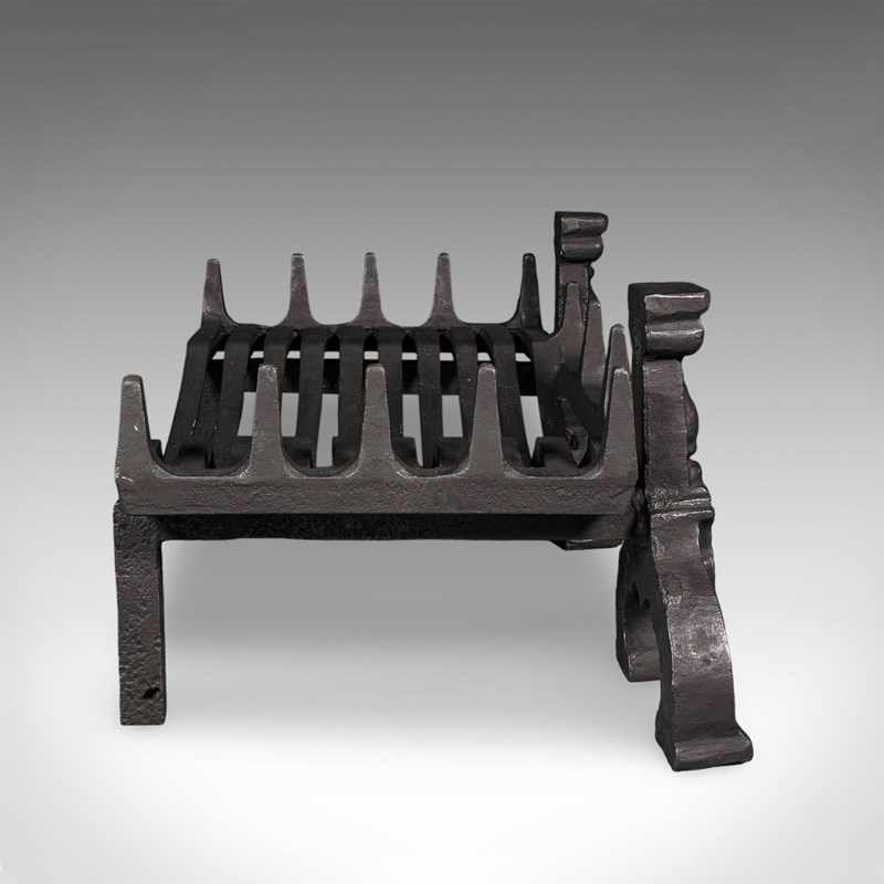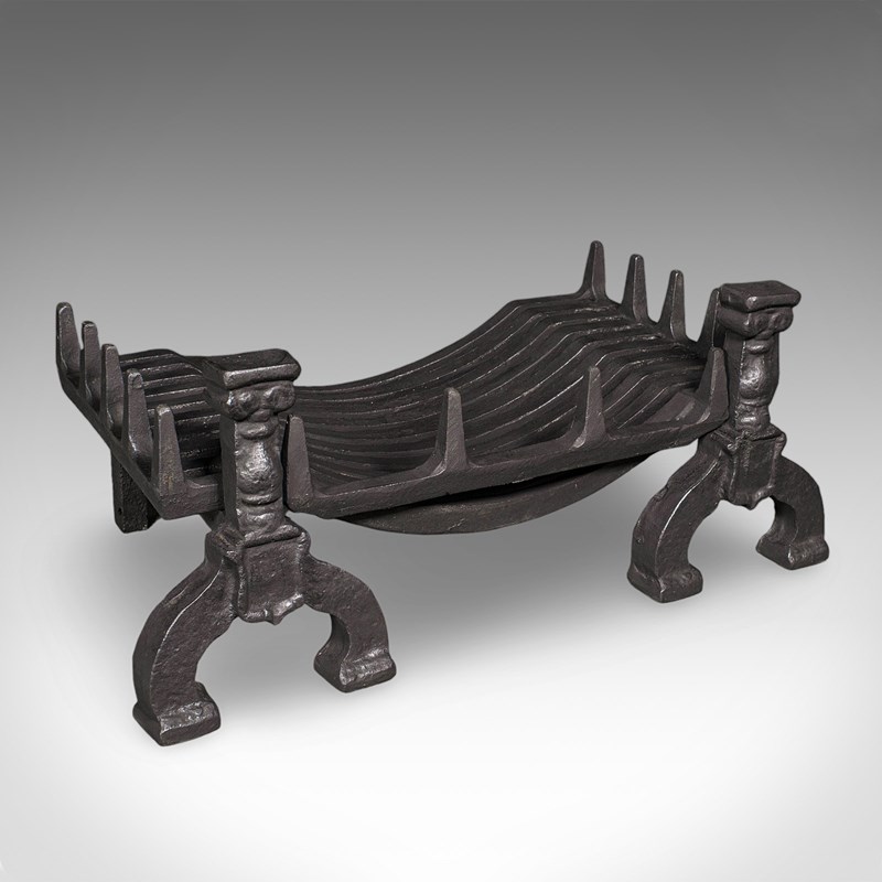 This is a fine antique fireplace hearth set, presenting a generously sized and substantial basket and fire dogs duo. Delivered ready for the home.