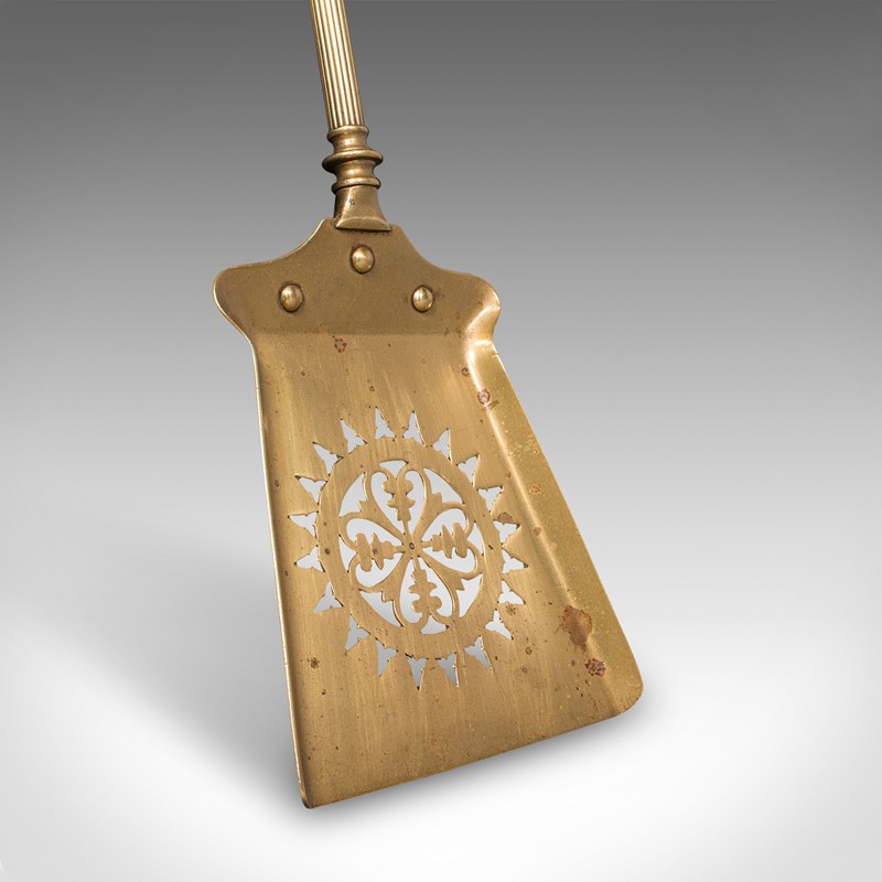 Antique Fireplace Tool Suite, English, Brass, Shovel, Poker, Tongs, Victorian