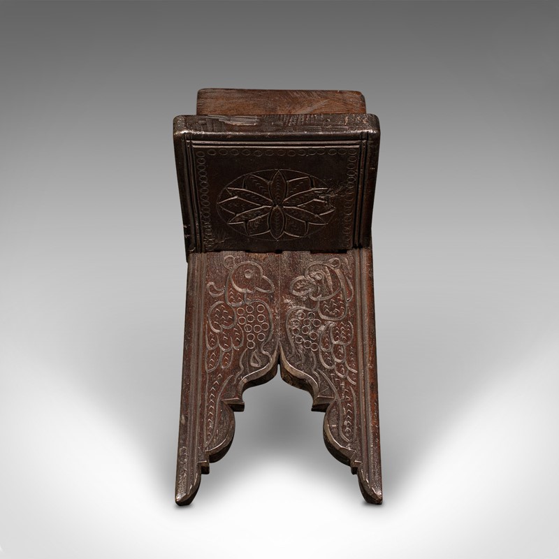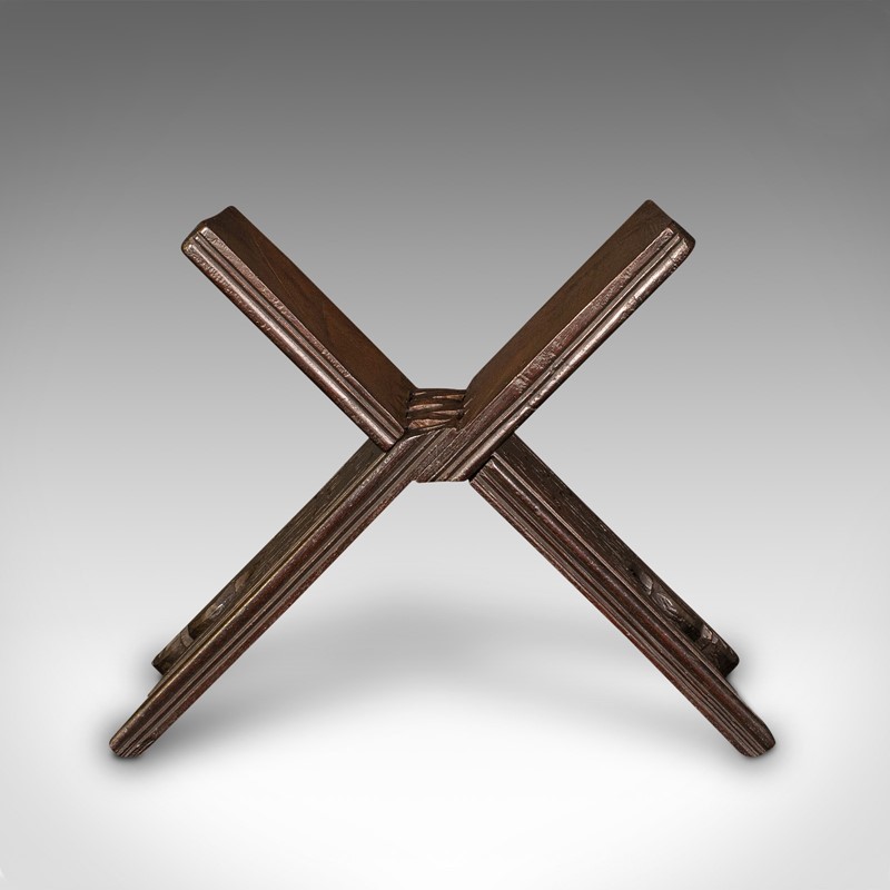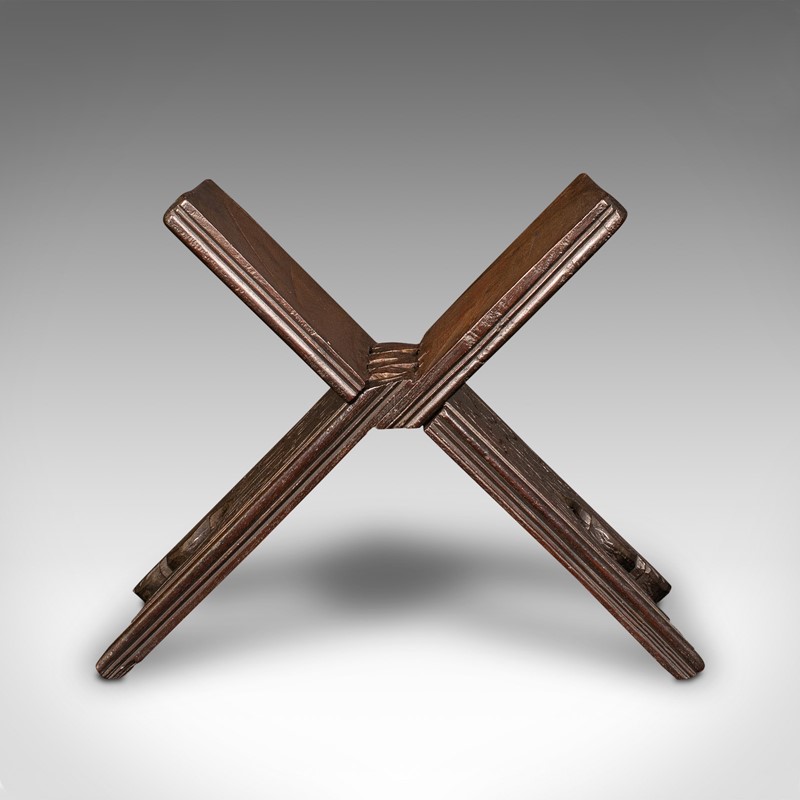 This is an appealing antique folio stand, with carved detail and useful folding nature. Delivered waxed, polished and ready for the home.