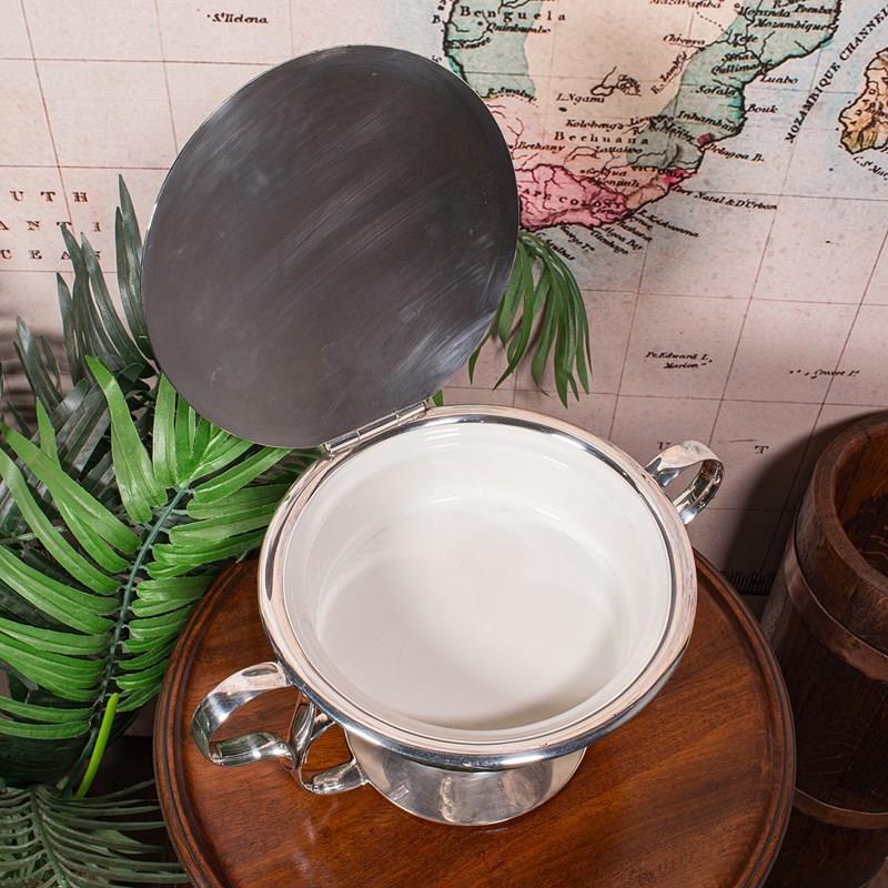 Antique Food Warmer, English Ceramic, Silver Plate, Chafing Heat Dish, Edwardian