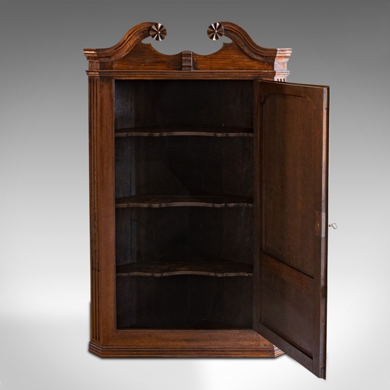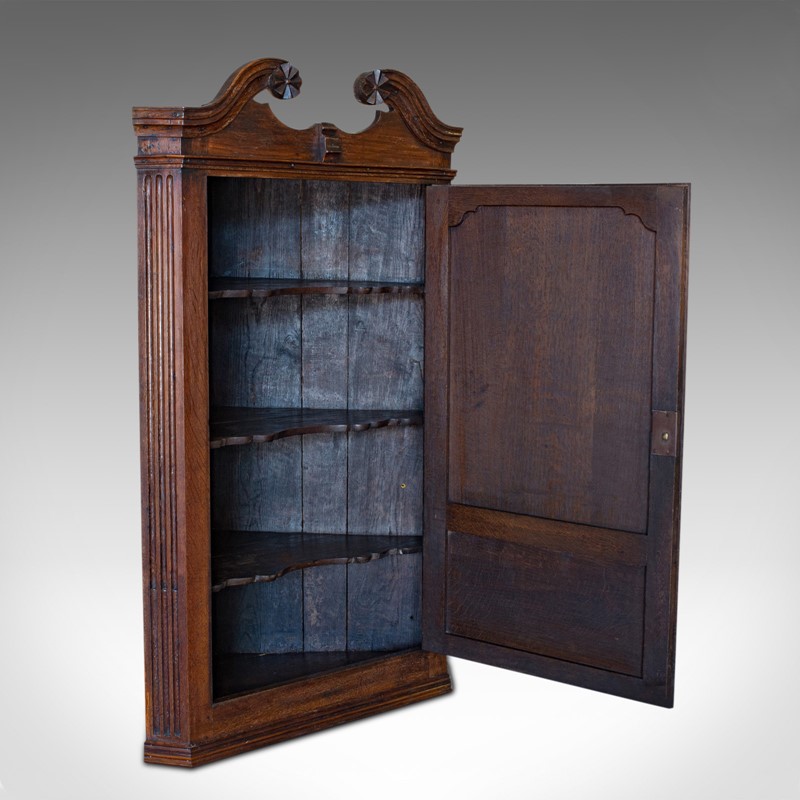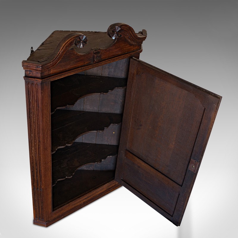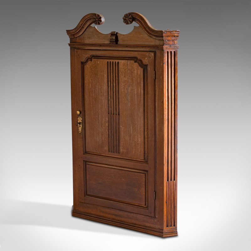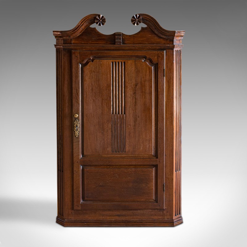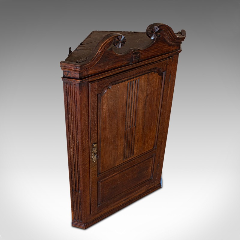 Antique Georgian Corner Cabinet, English, Oak, Wall Hanging Cupboard, Circa 1780