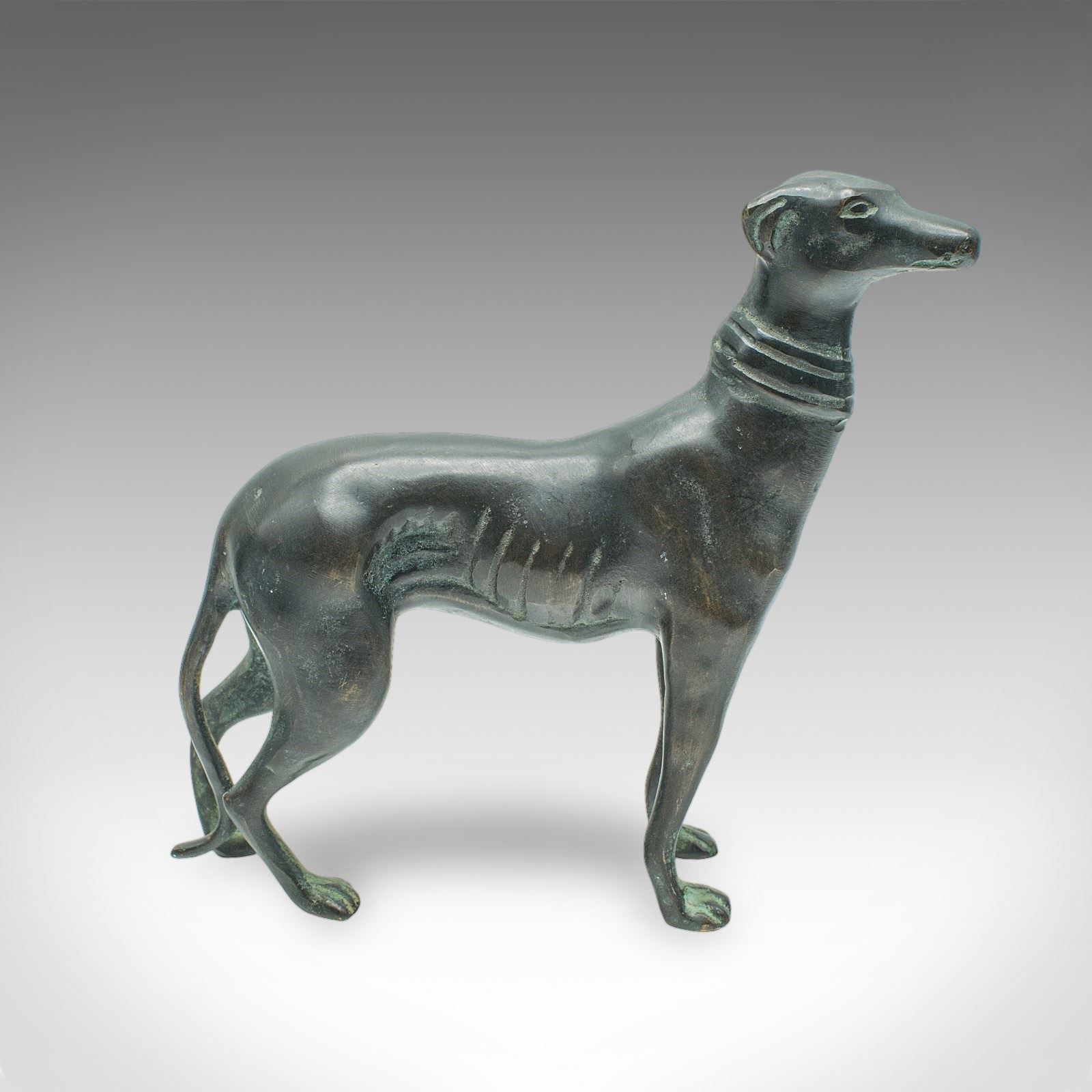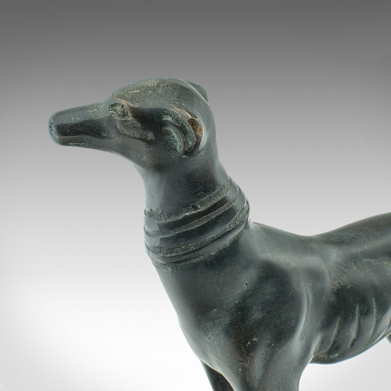 This is an antique greyhound figure. A French, bronze dog paperweight or ornament, dating to the late Victorian period, circa 1880. A charming decorative piece, ideal for the desk, study or mantle.