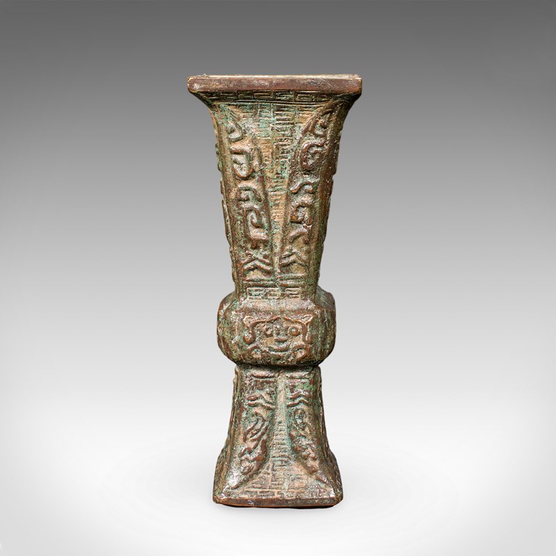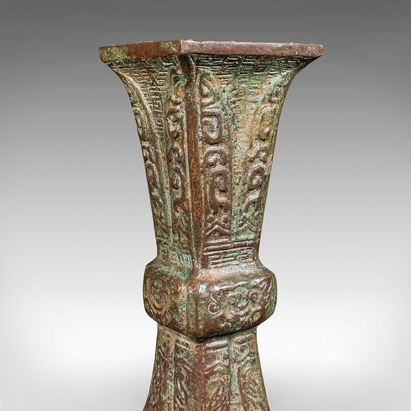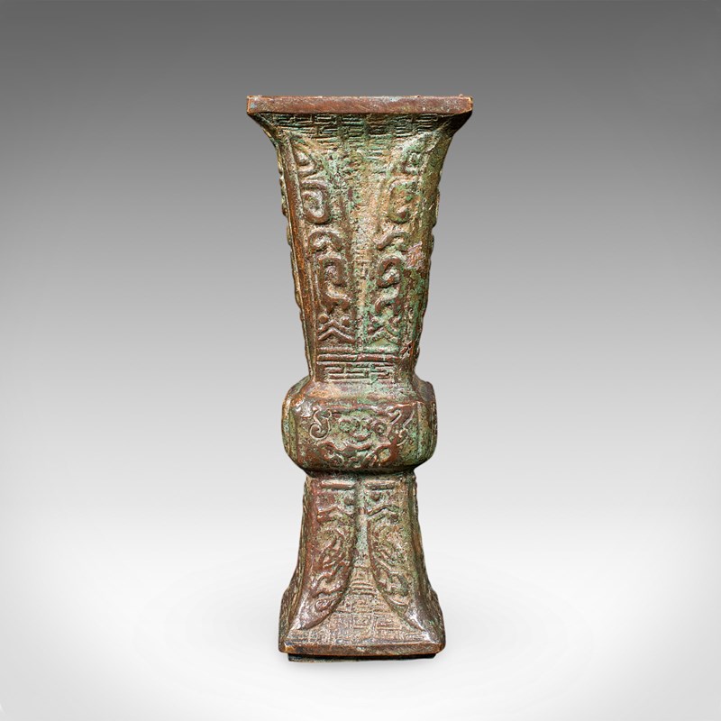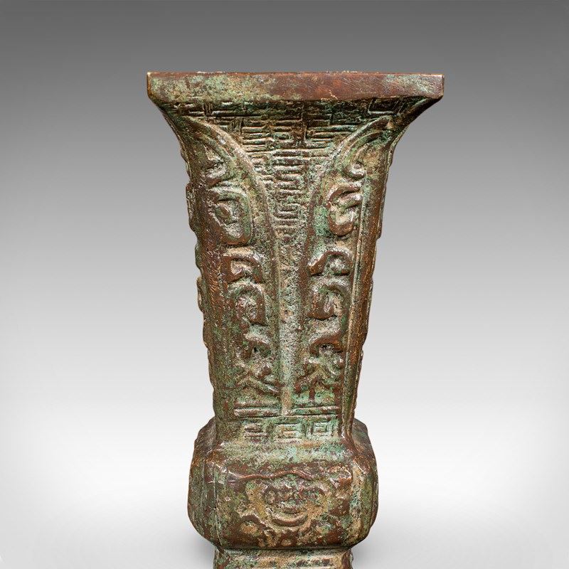 Antique Gu Ritual Vessel, Oriental, Bronze, Ceremonial, Posy Vase, Victorian