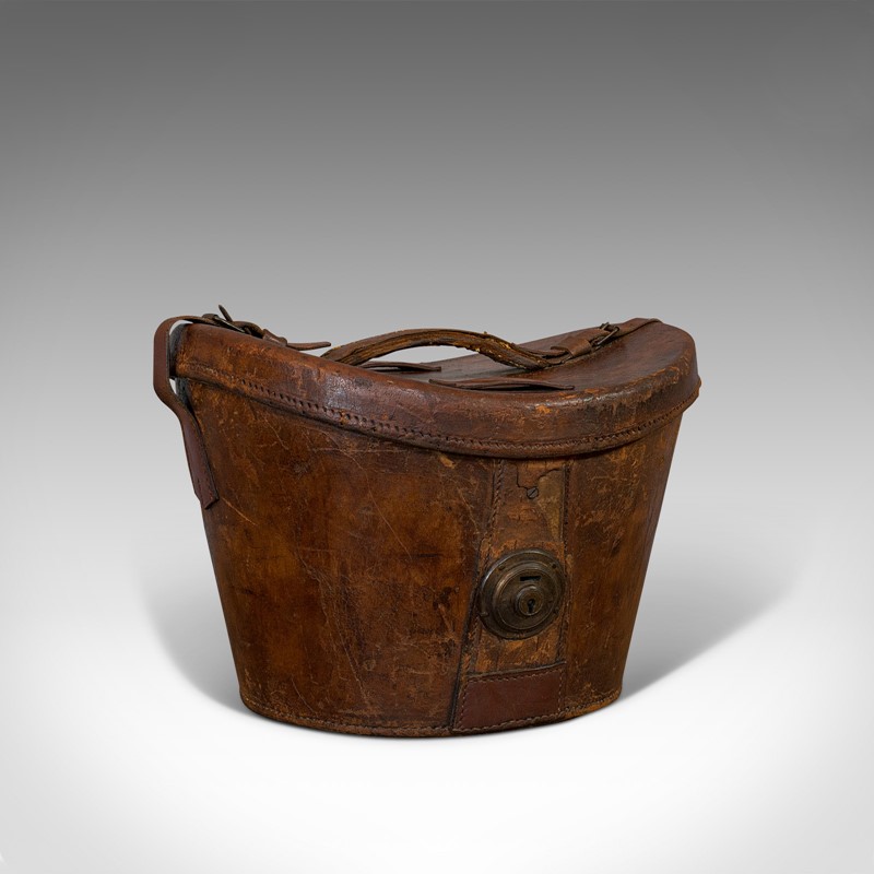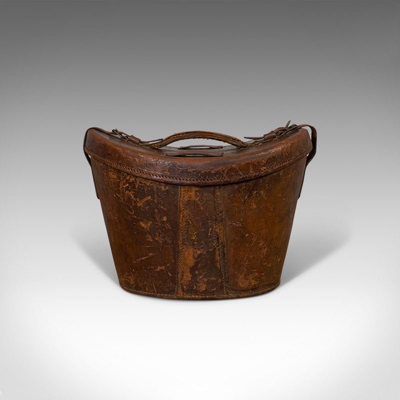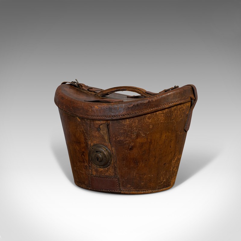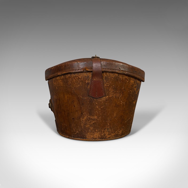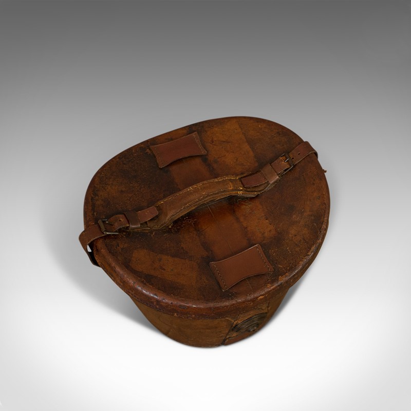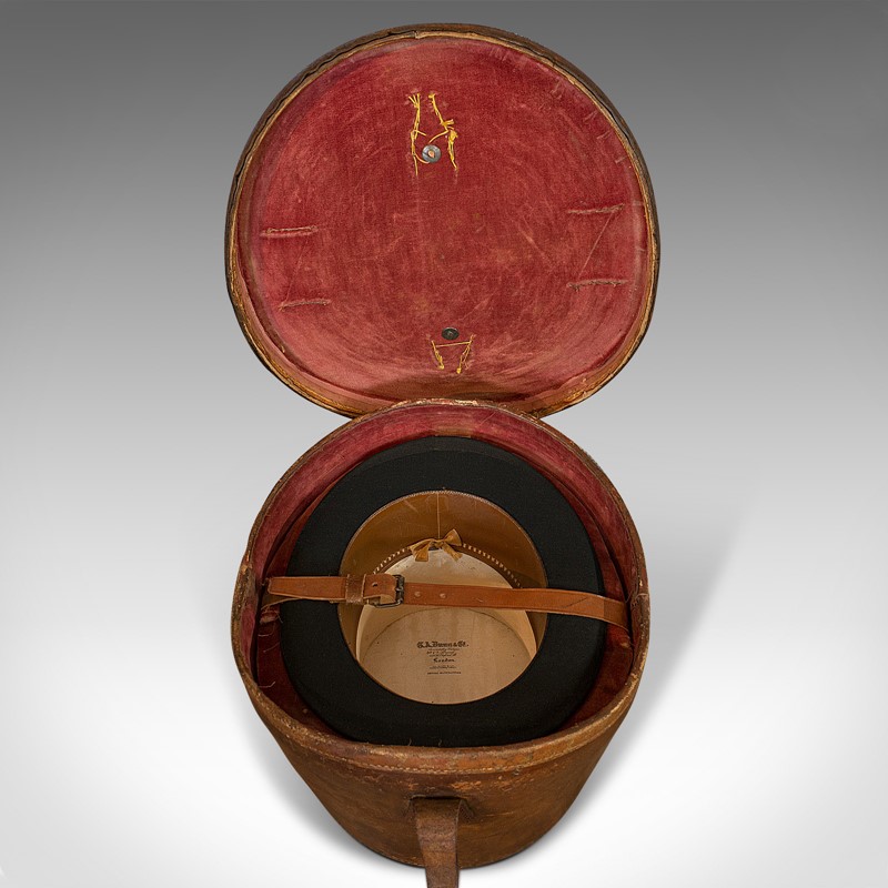 Antique Hat Box, English, Leather, Case, Silk Top Hat, Dunn, Regency, Circa 1820