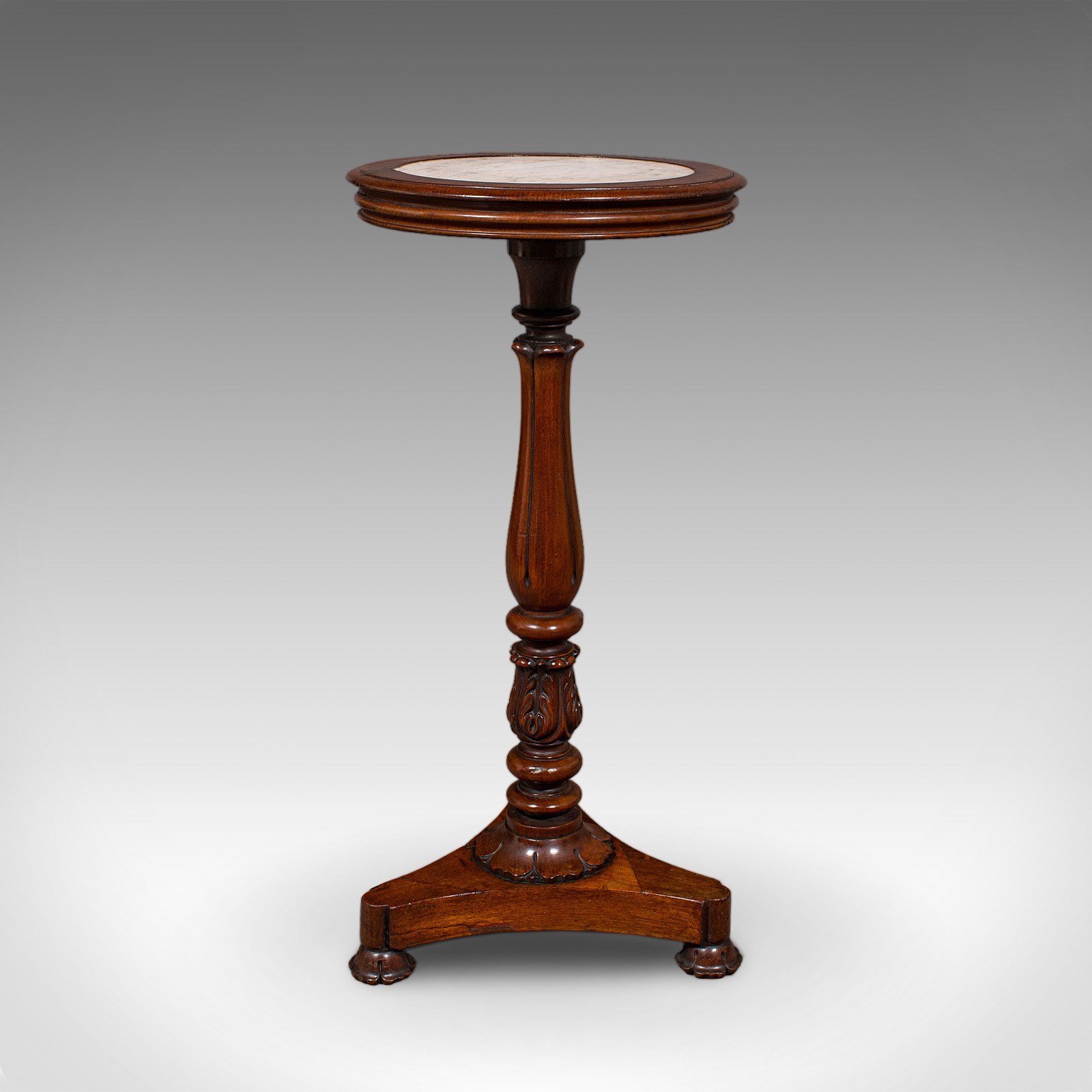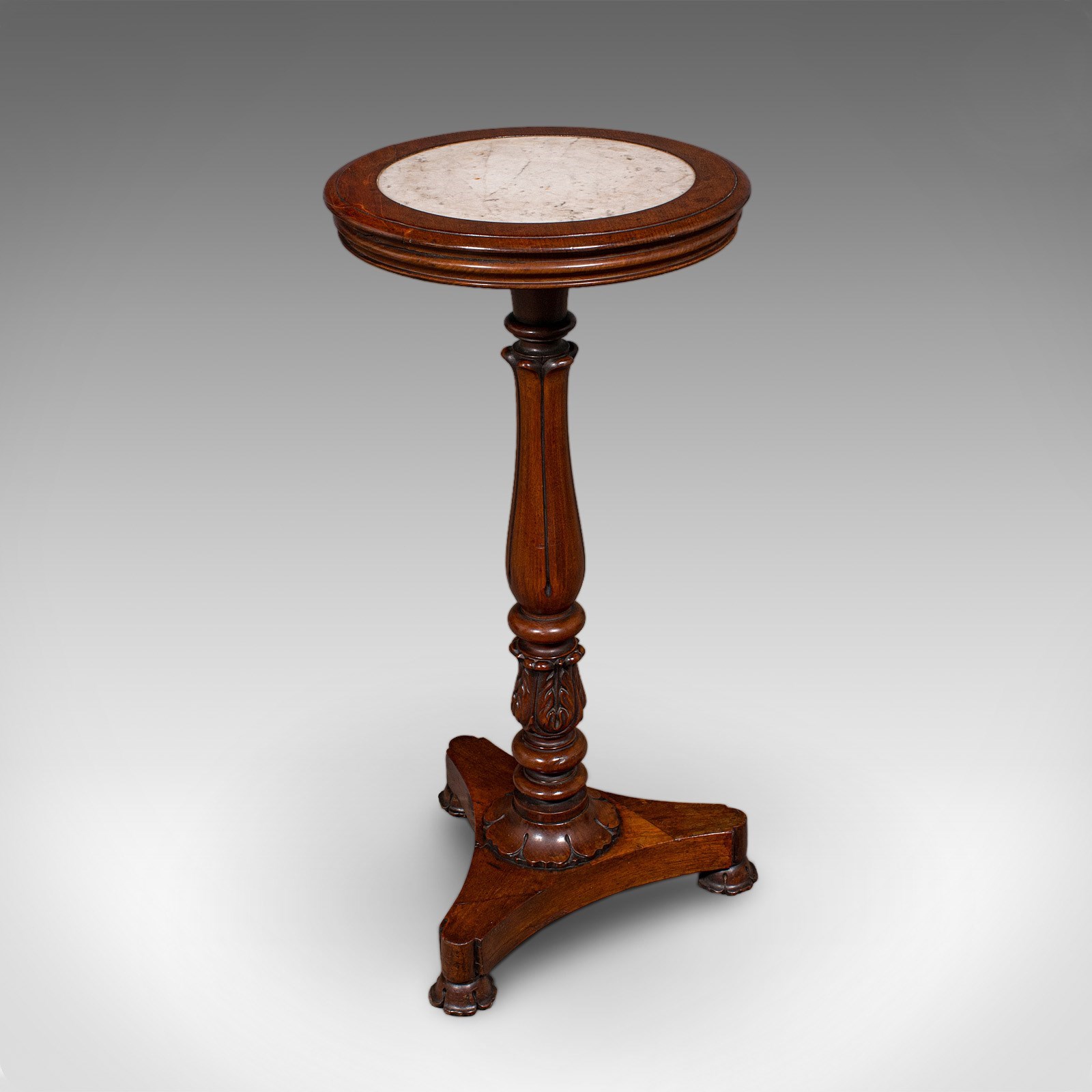 This is an antique jardiniere stand. An English, walnut and marble lamp or planter table, dating to the William IV period, circa 1835. A beautifully crafted example, offering superb material quality and a distinguished decorative presence.