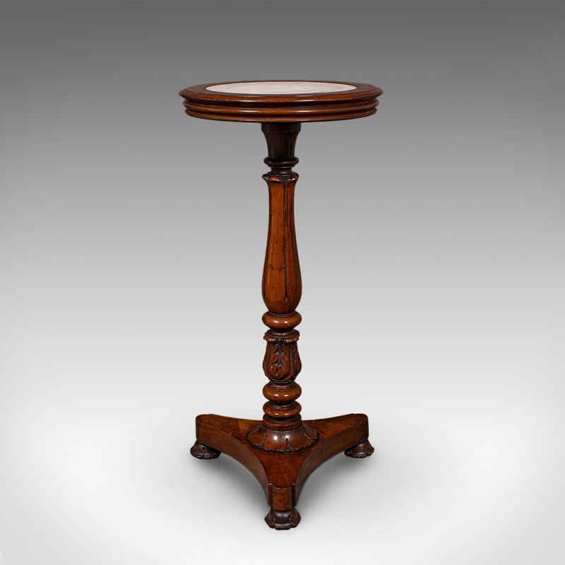 Antique Jardiniere Stand, English, Walnut, Marble, Planter Table, William IV