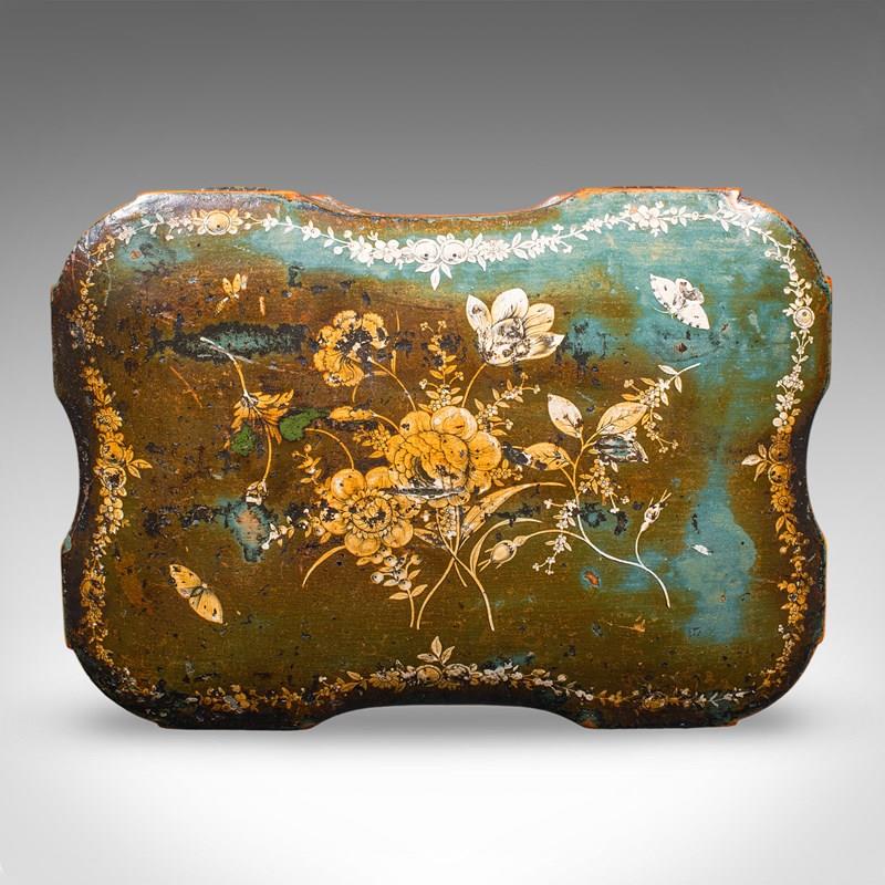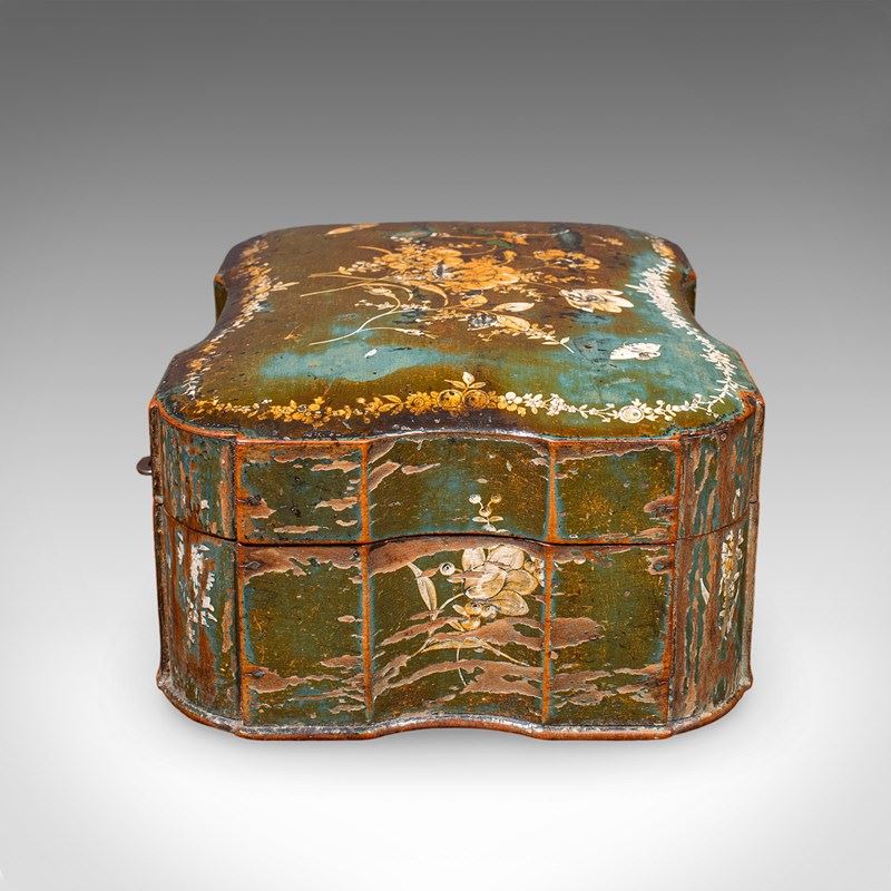 Antique Ladies Table Box, Italian, Lacquer, Oak, Keepsake Case, Victorian, 1900