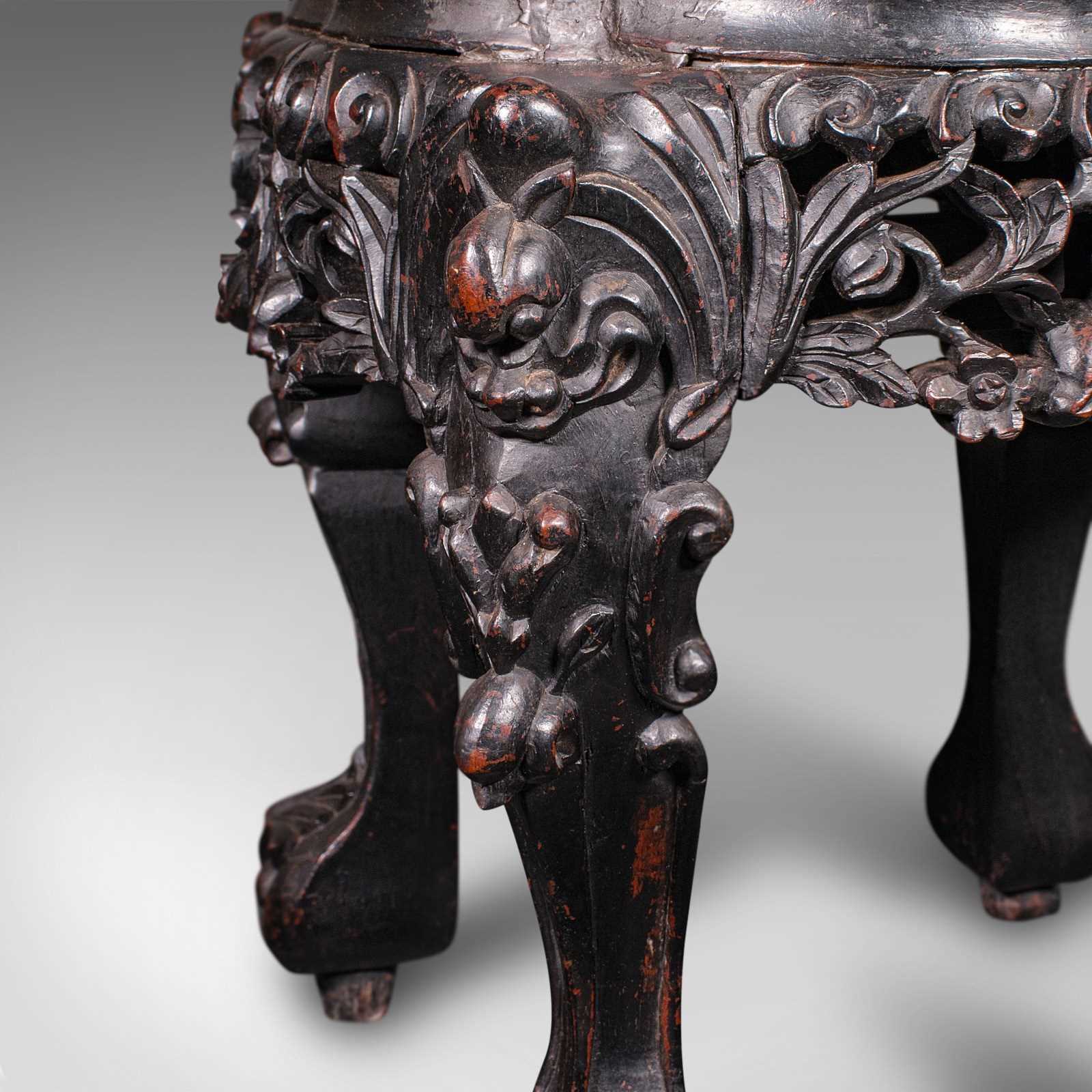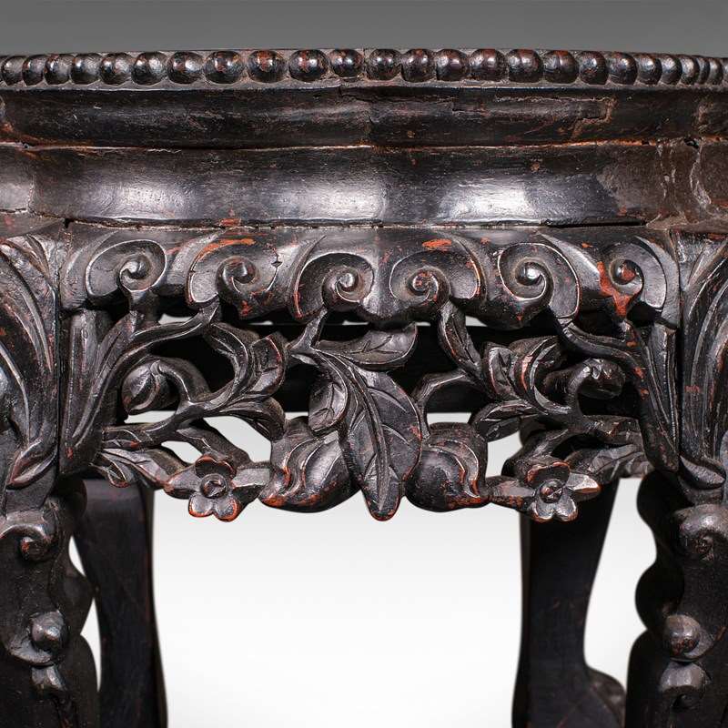 This is an antique lamp table. An English, ebonised mahogany occasional stool, side table or wine stand, dating to the early Victorian period, circa 1850. A richly toned and beautifully carved piece, offering superb decorative appeal.