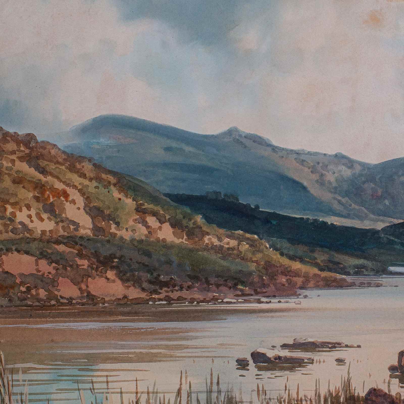 Depicts Loch na Caillich, with the water’s edge in the foreground