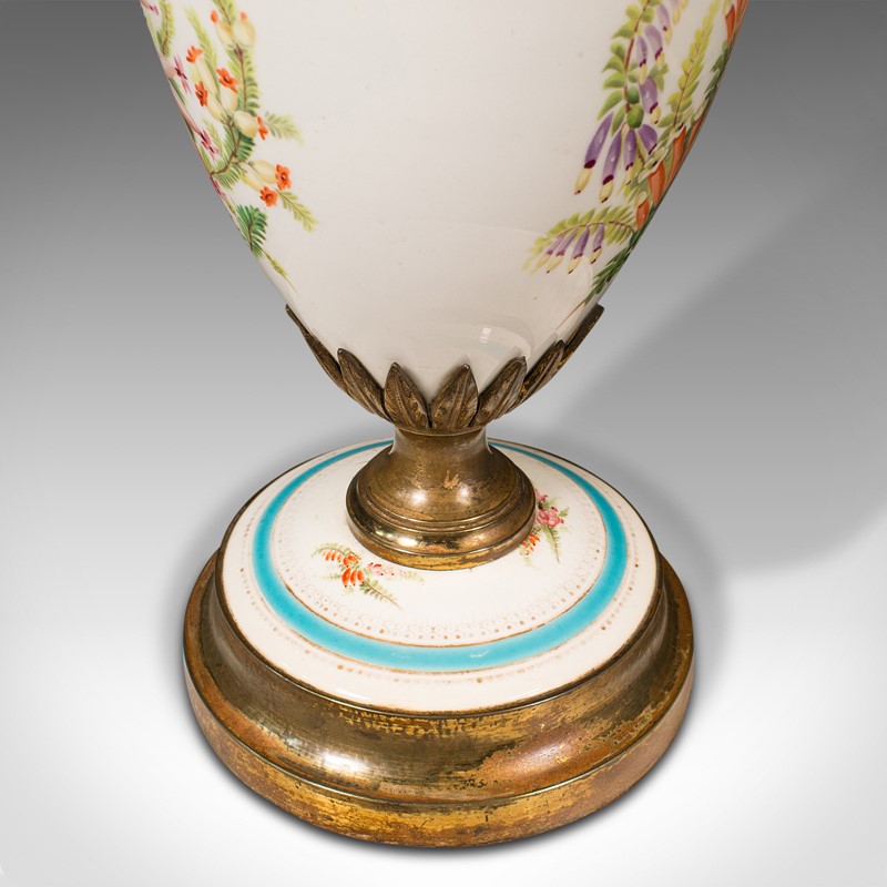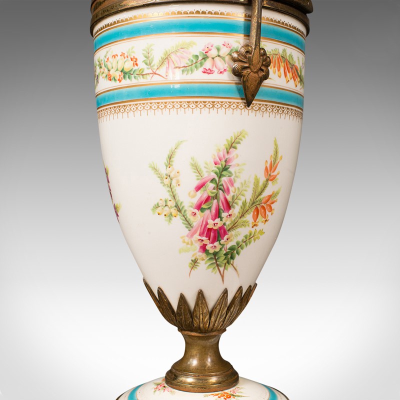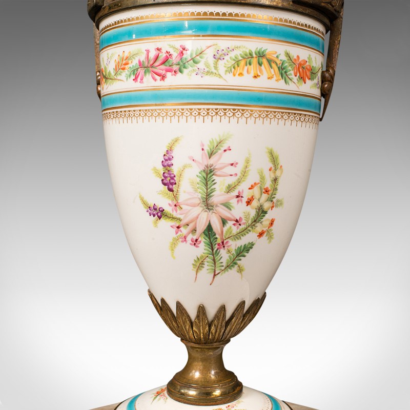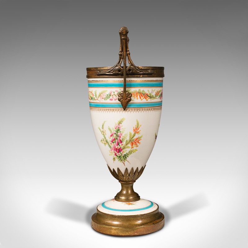 This is an antique mantlepiece jardiniere. A French, ceramic and gilt metal display planter, dating to the late Victorian period, circa 1900.