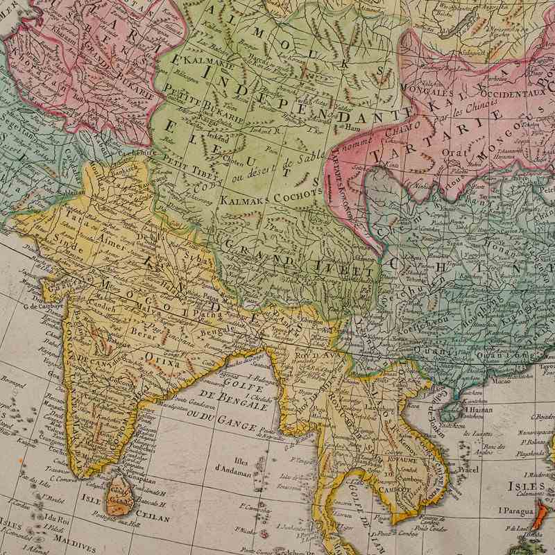 Fascinating cartographic interest of the Asian continent in the 18th century