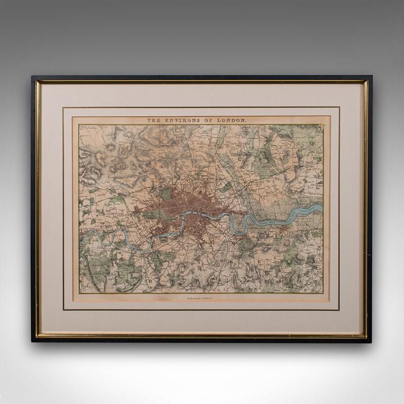 Antique Map, The Environs Of London, English, Framed City Plan, Victorian, 1850