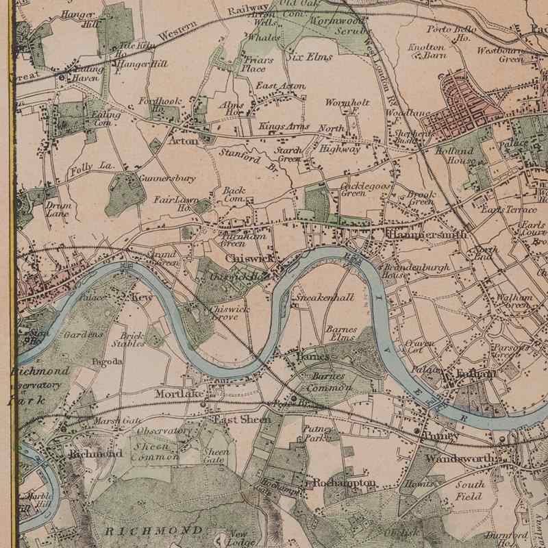 A joy for the collector of London mapping, or interest in the capital city, this is a fascinating antique map of London and its environs, with a well presented representation in colour and tastefully mounted. Delivered ready to display.