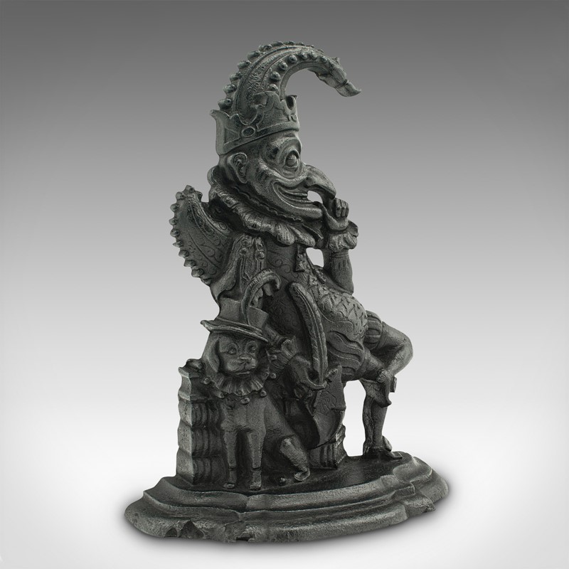 Antique Mr Punch Doorstop, English, Cast Iron, Figure, Door Keeper, Victorian
