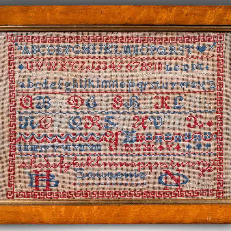 Antique Needlework Sample, English, Framed, Embroidery, Decor, William IV, 1835