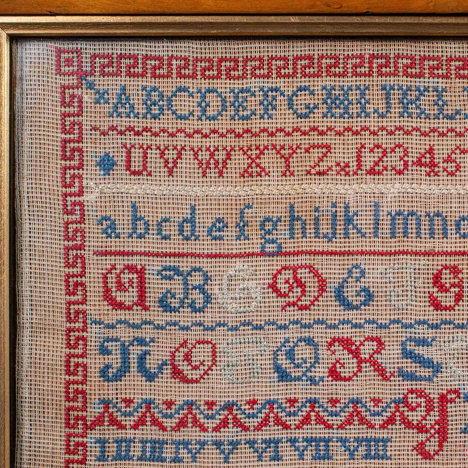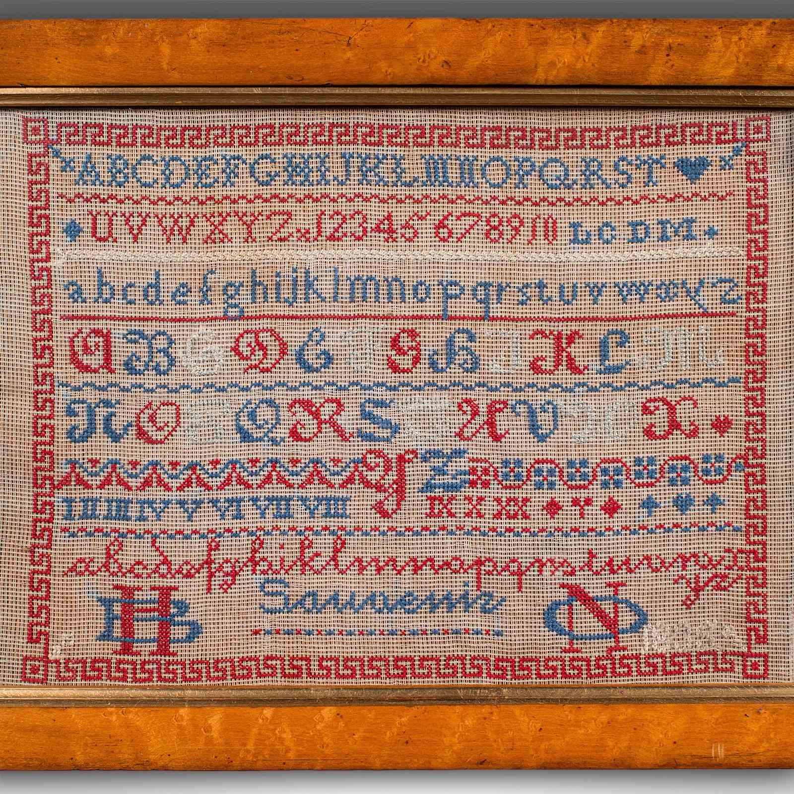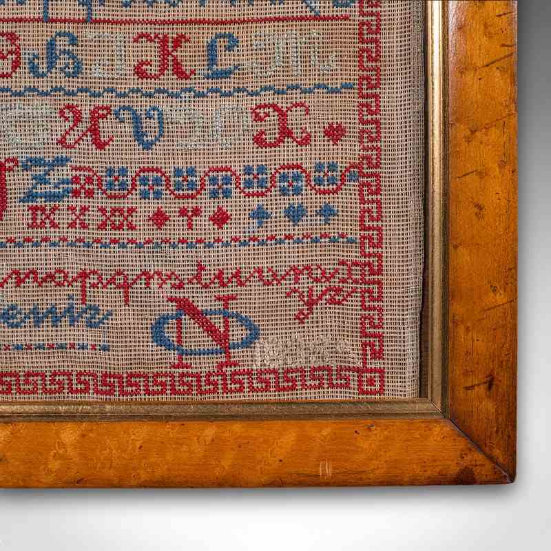 This is an antique needlework sampler. An English, framed embroidered panel, dating to the William IV period, circa 1835. A fascinating example of early 19th century domestic handiwork, presented with tasteful restraint.