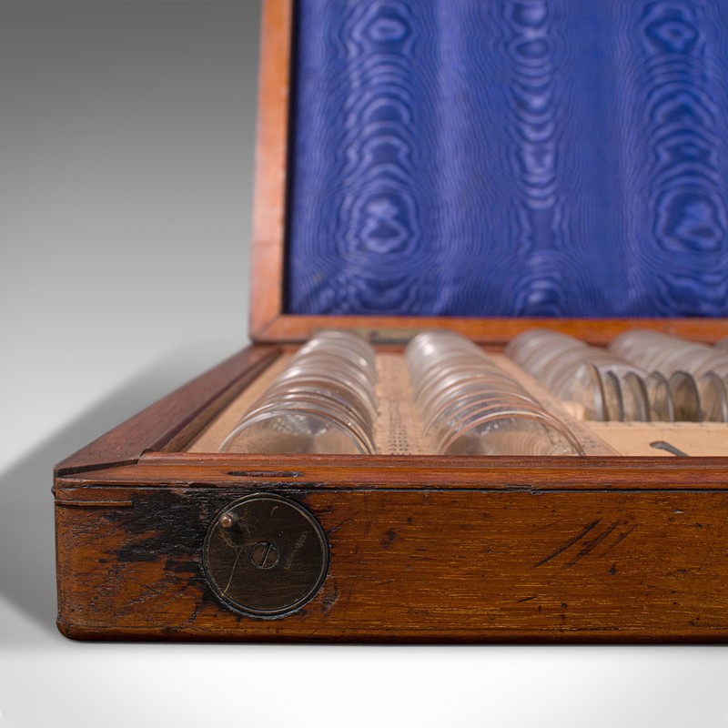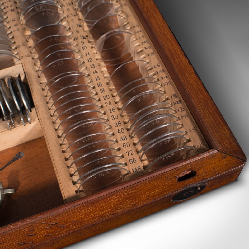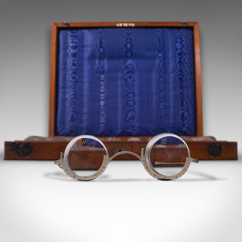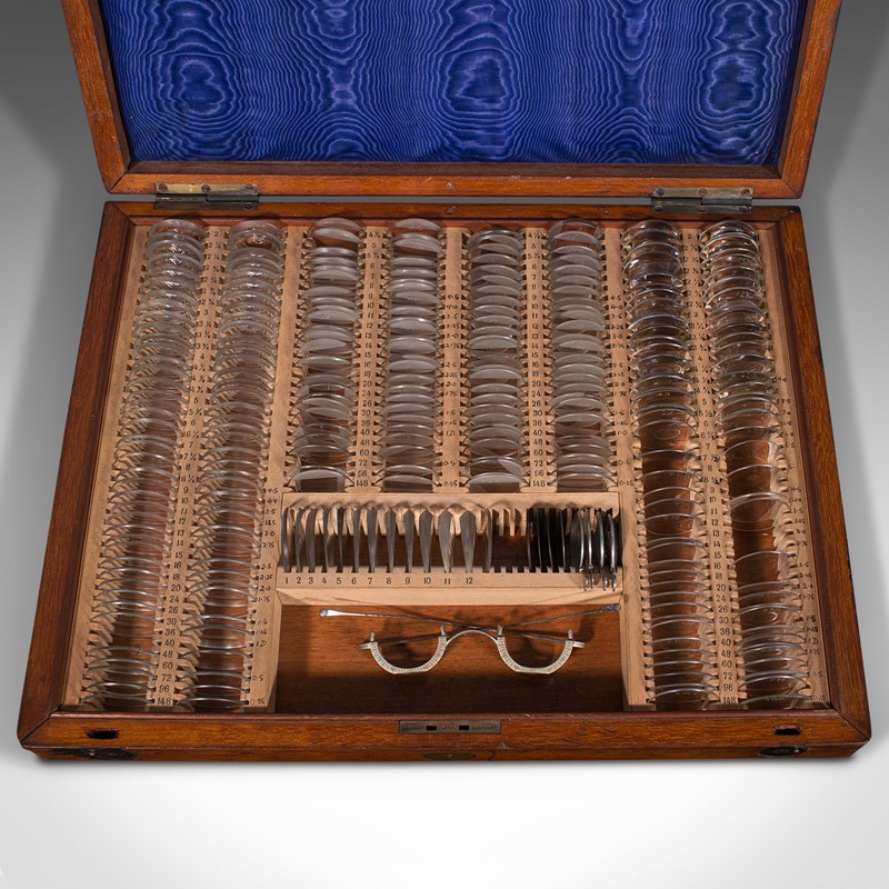 This is a delightful antique optometrist's set, with charming display appeal and scientific interest. Ideal for display within a collection or an institution. Delivered polished and ready to enjoy.