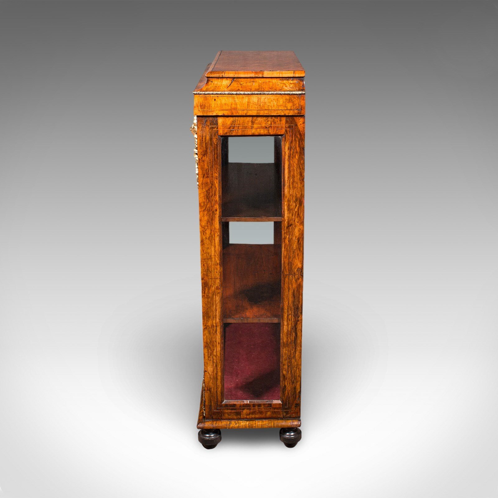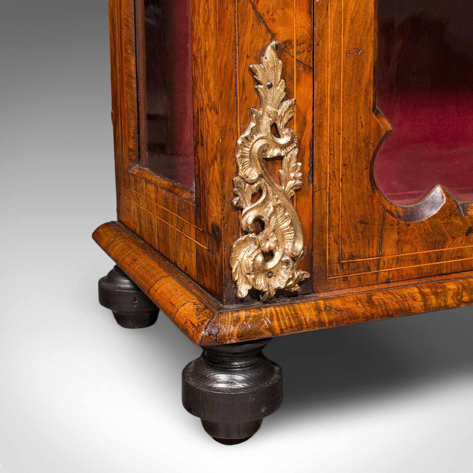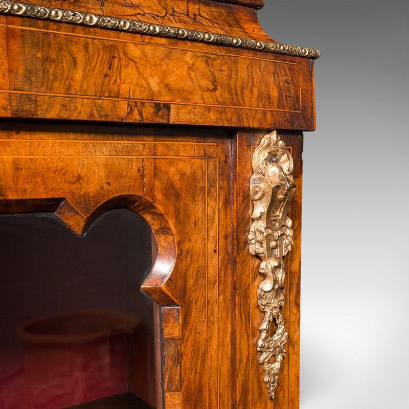 Antique Pier Cabinet, English, Walnut, Glazed Display Bookcase, Victorian, 1860