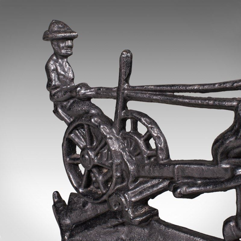 Antique Ploughman Doorstop, English, Cast Iron, Farmhouse Door Keeper, Victorian