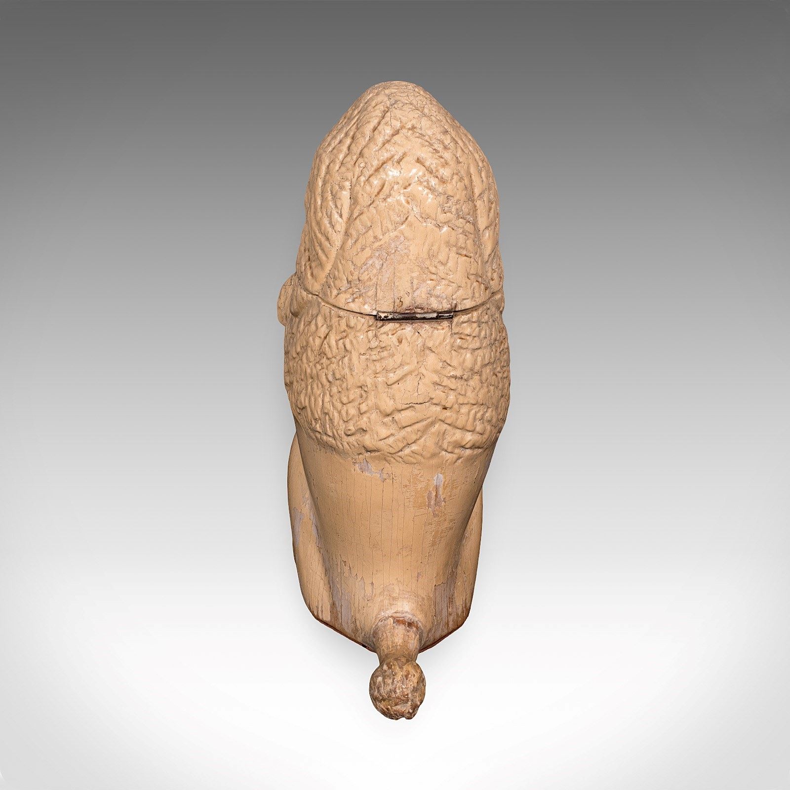 This is an antique poodle tobacco jar. An English, fruitwood dog-shaped treen, dating to the Edwardian period, circa 1910.