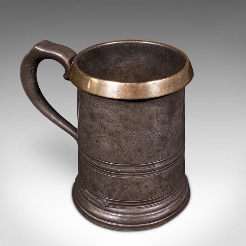 Antique Public House Tankard, English, Pewter, Quart Jug, Breweriana, Victorian