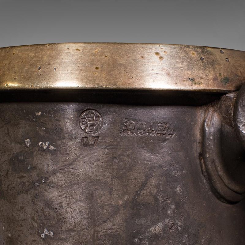 Polished brass rim presents subtle golden tones, contrasting with the weathered pewter