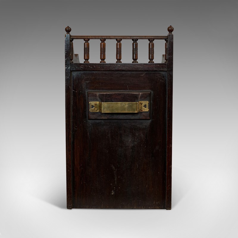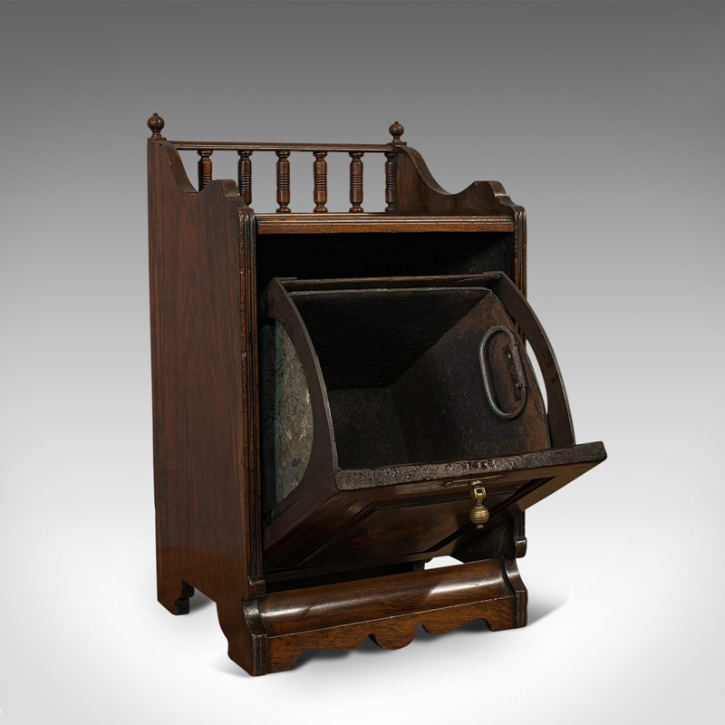 This is a quality and desirable antique purdonium. Offering high fireside appeal, this cabinet is well suited to storing coal, fire wood or kindling. Solid joints and construction, delivered waxed, polished and ready for the fireplace.