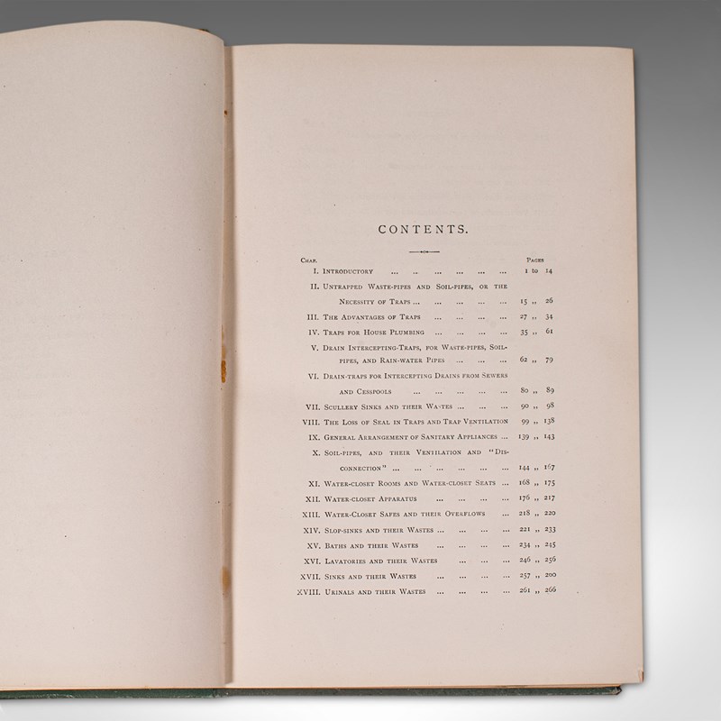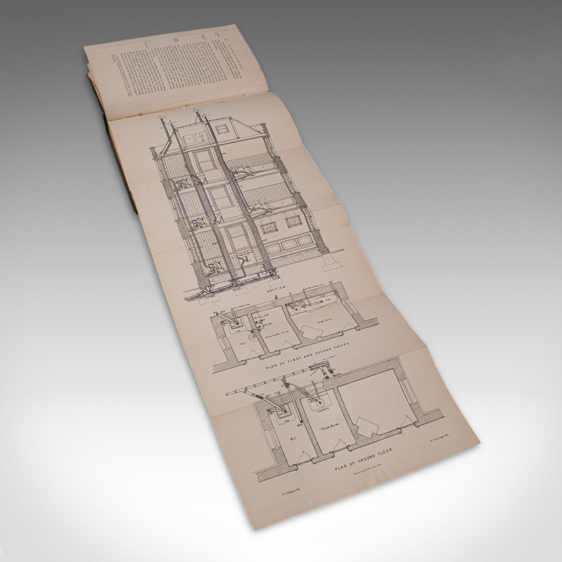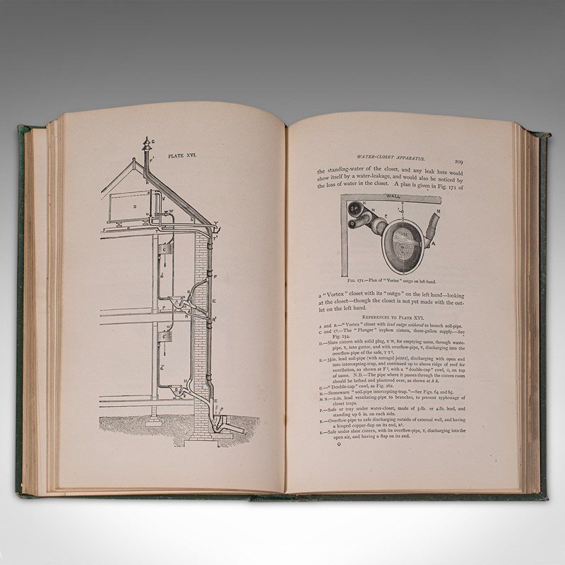A fascinating late 19th century volume of architectural and practical interest across 431 pages, reflecting the Victorian era’s growing focus upon sanitation, plumbing practice and domestic health.