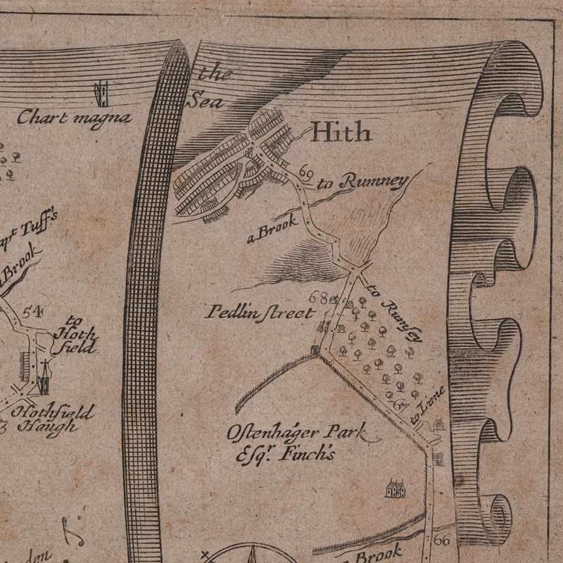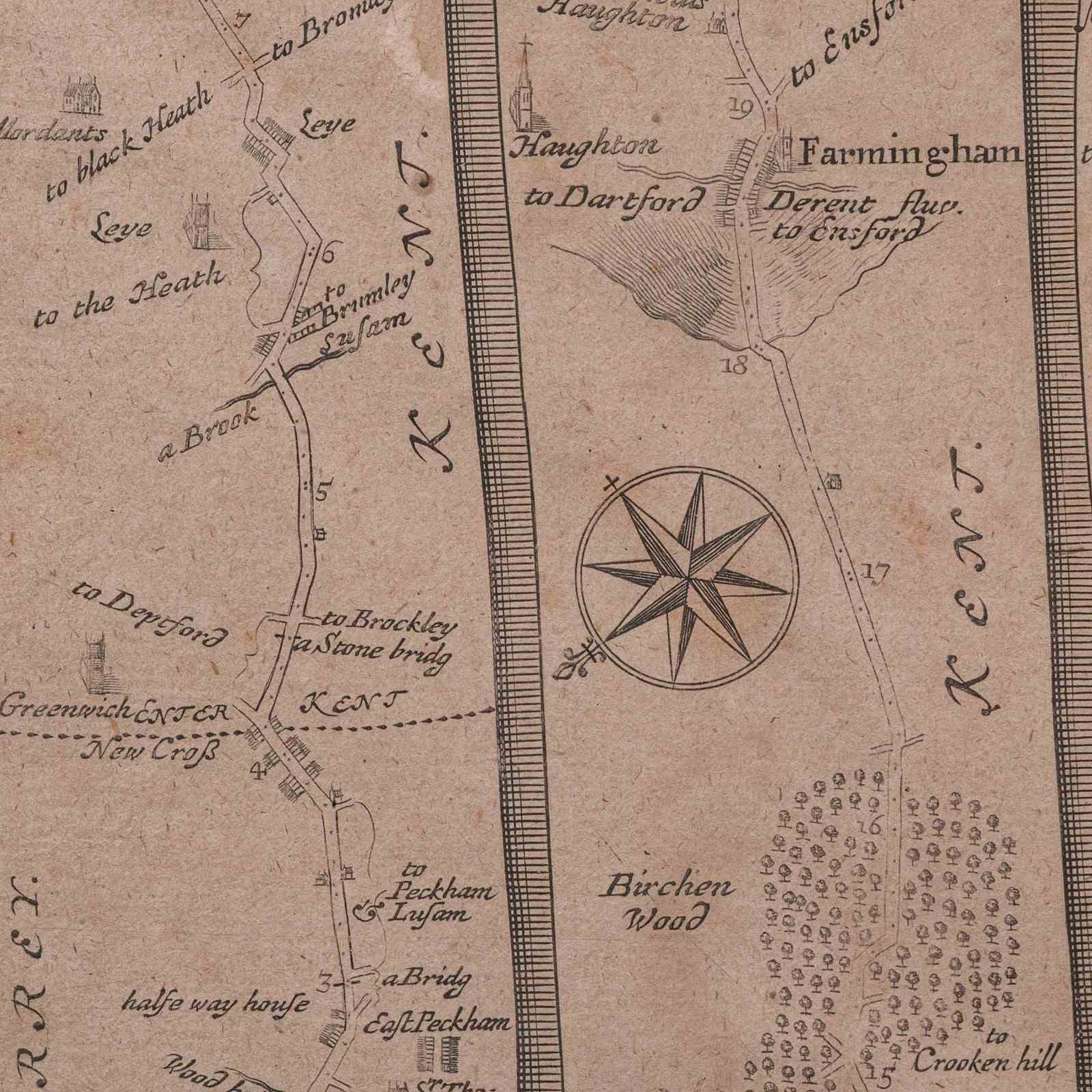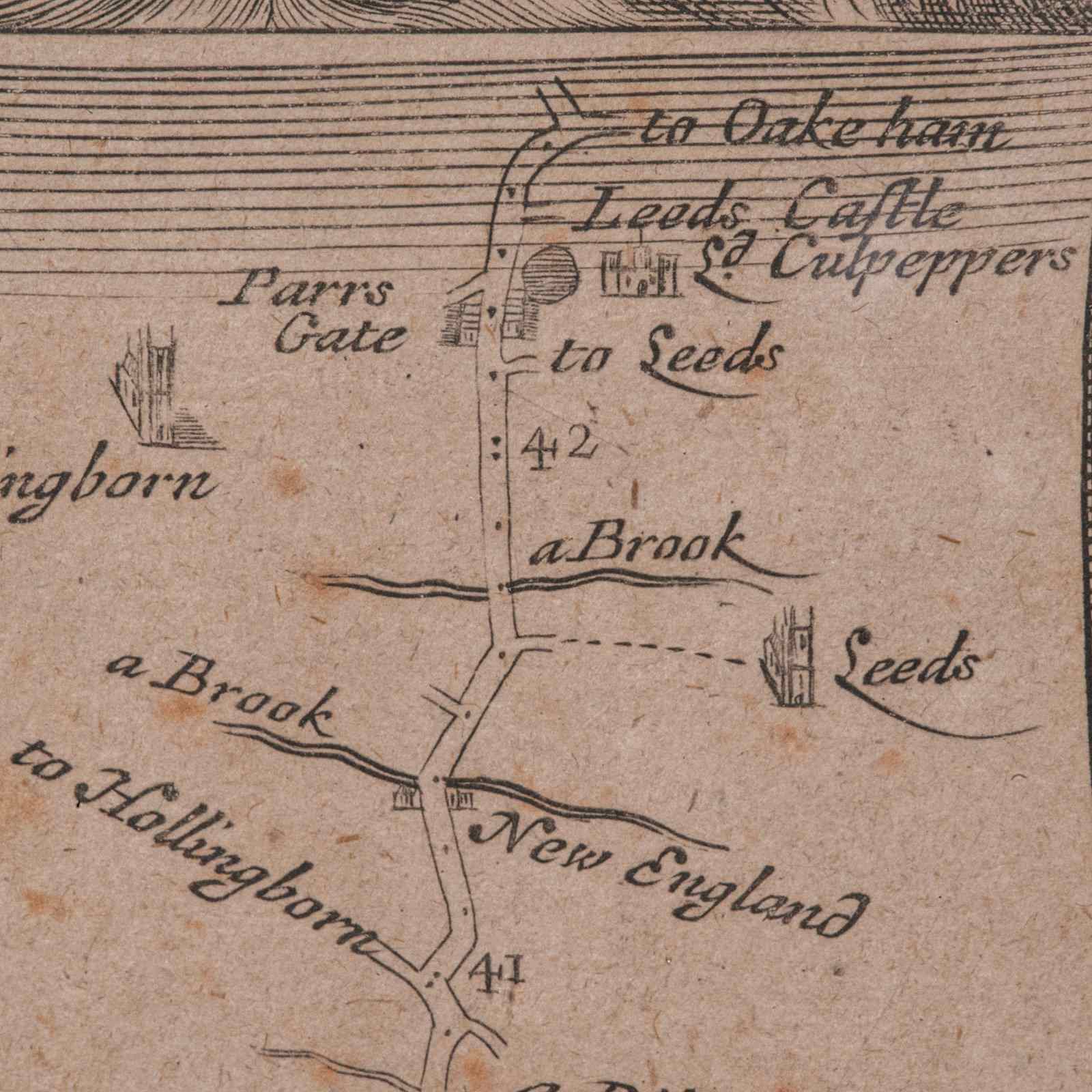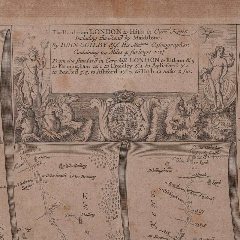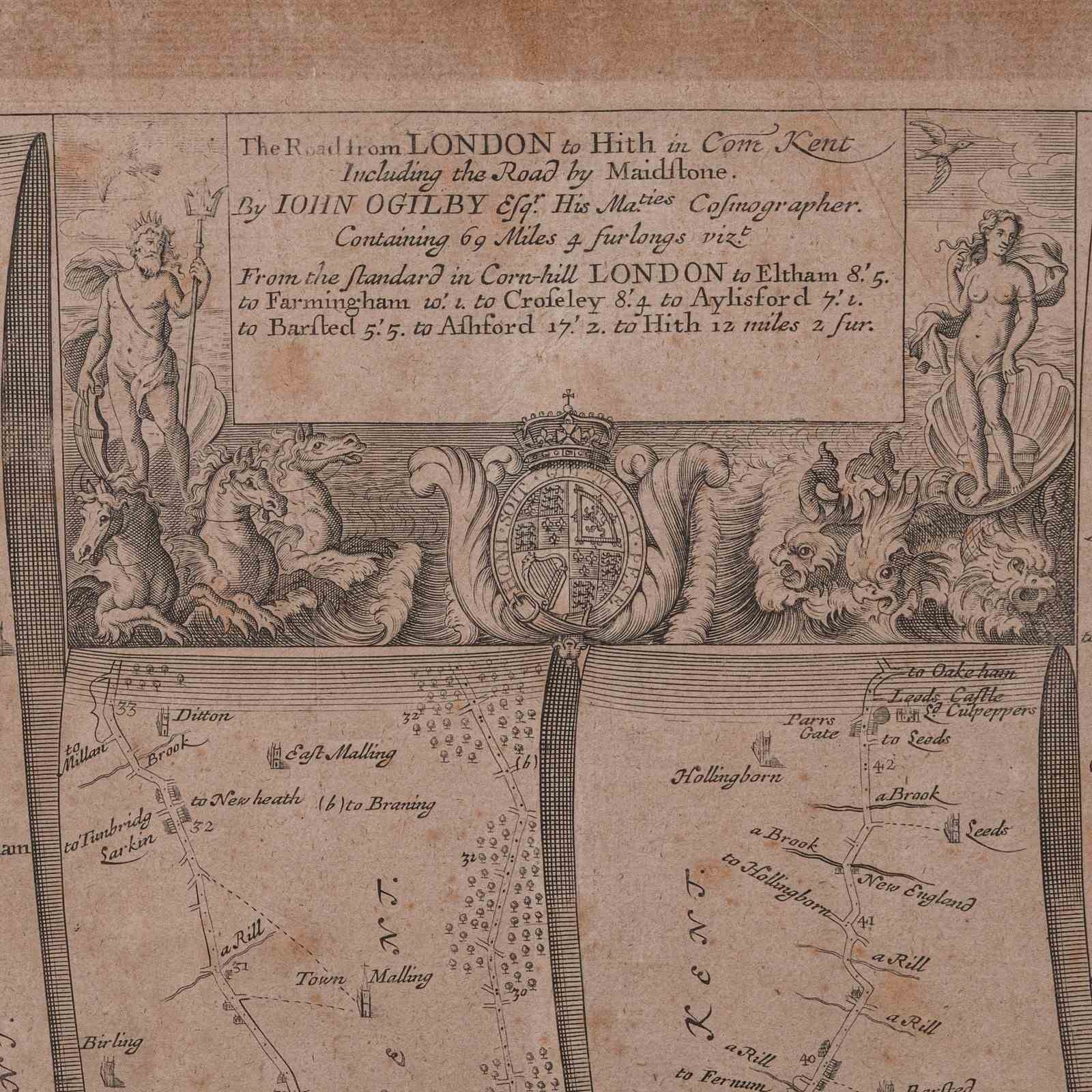 Antique Road Map, London To Hythe, Kent, English, Cartography, John Ogilby, 1675