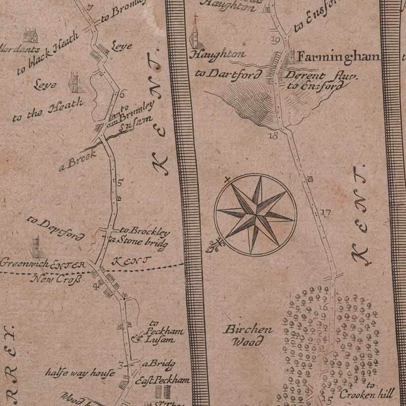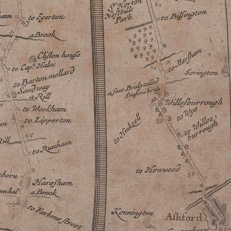 Ogilby’s pioneering trundle wheel method mapped the route at 1 inch to the mile scale