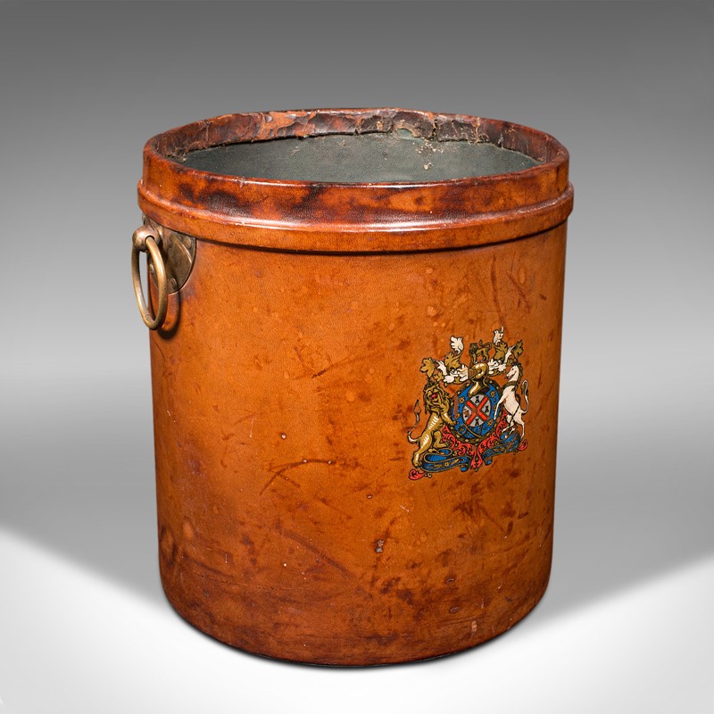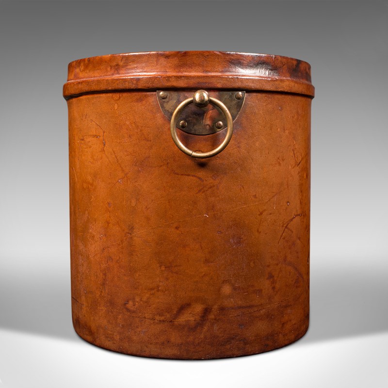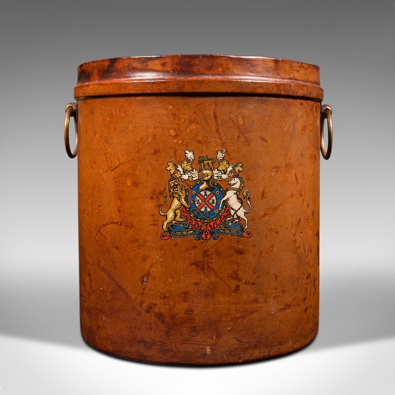 Antique Storage Bin, English, Leather, Bucket, Store, Hall Stand, Victorian