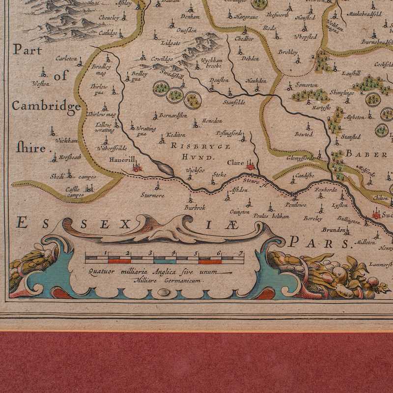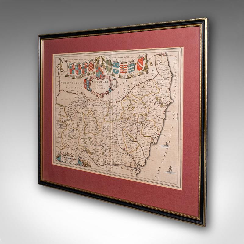 Antique Suffolk County Map, Dutch, Atlas Novus, Joan Blaeu, Cartography, C.1645