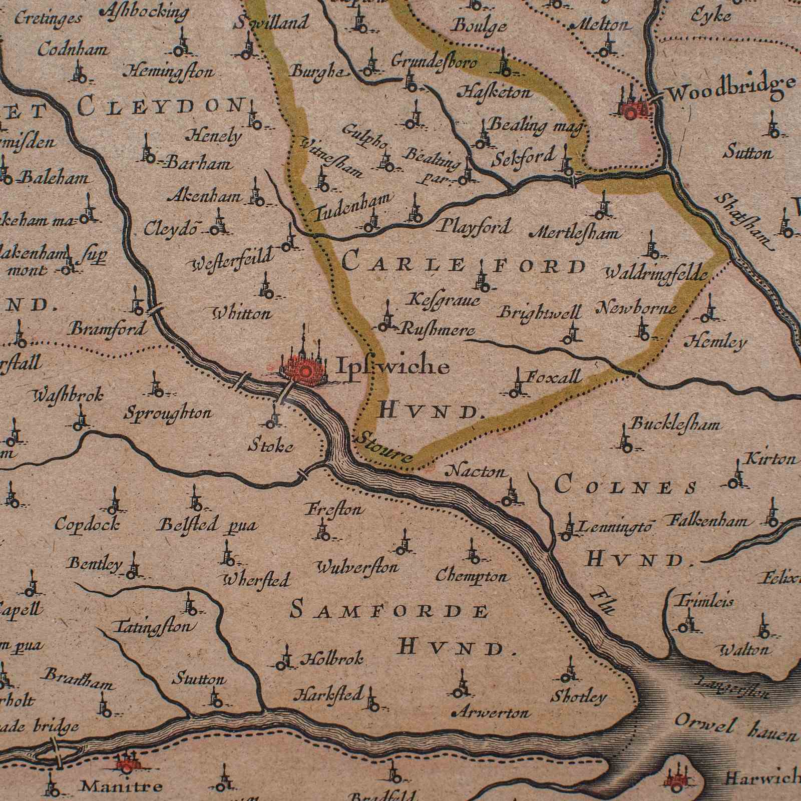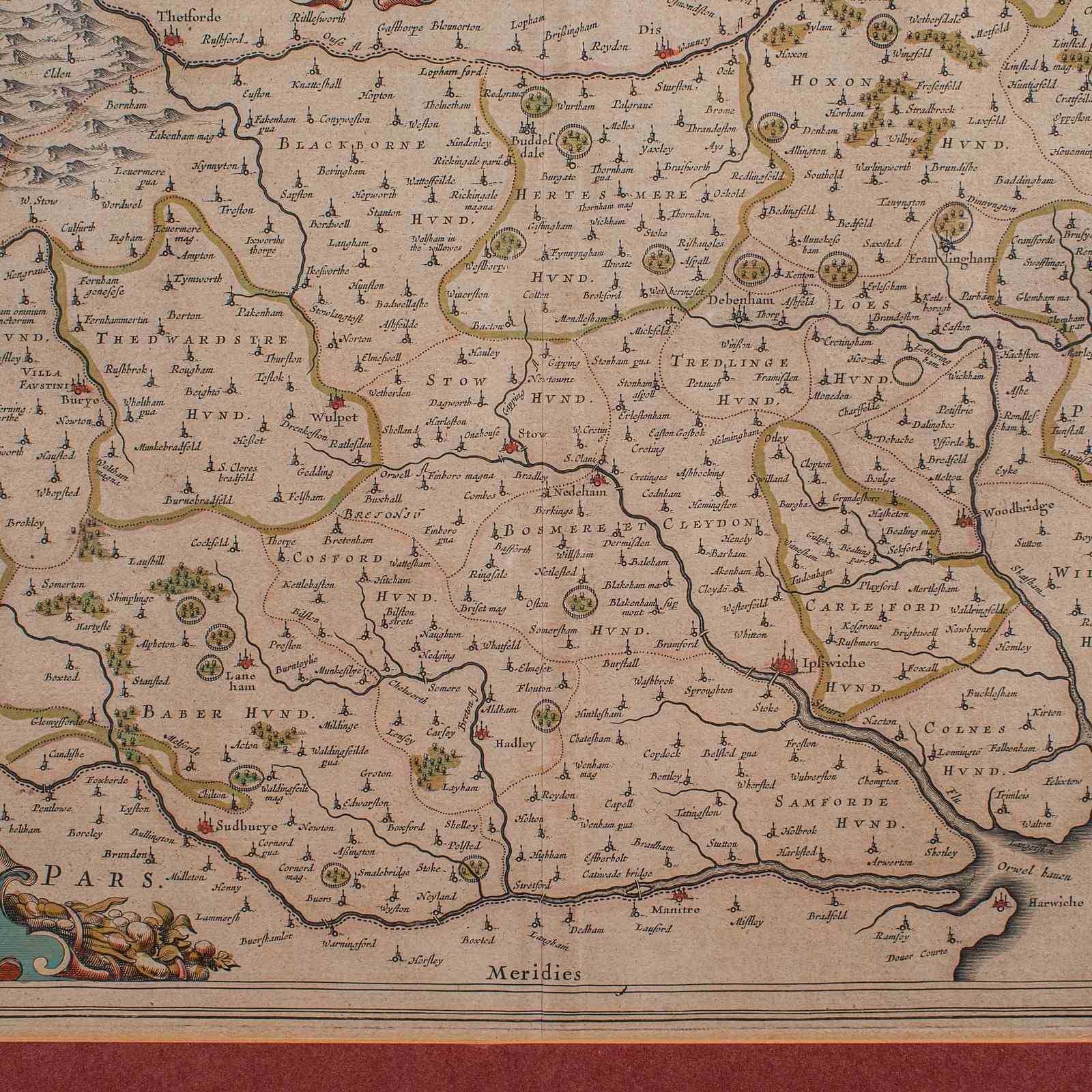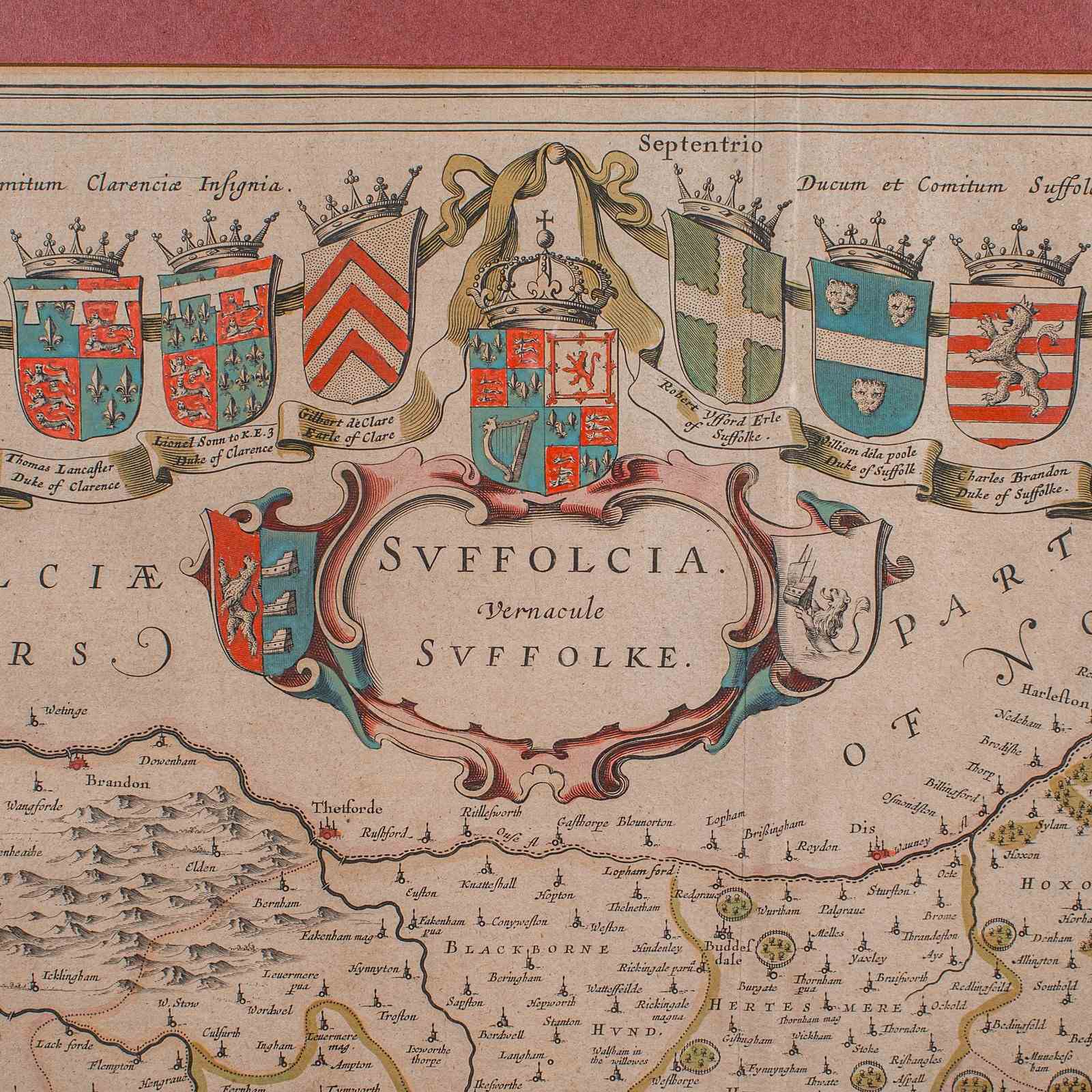 This is a fascinating antique county map of Suffolk, with superb detail and mid-17th century cartographic interest. Delivered ready to display.