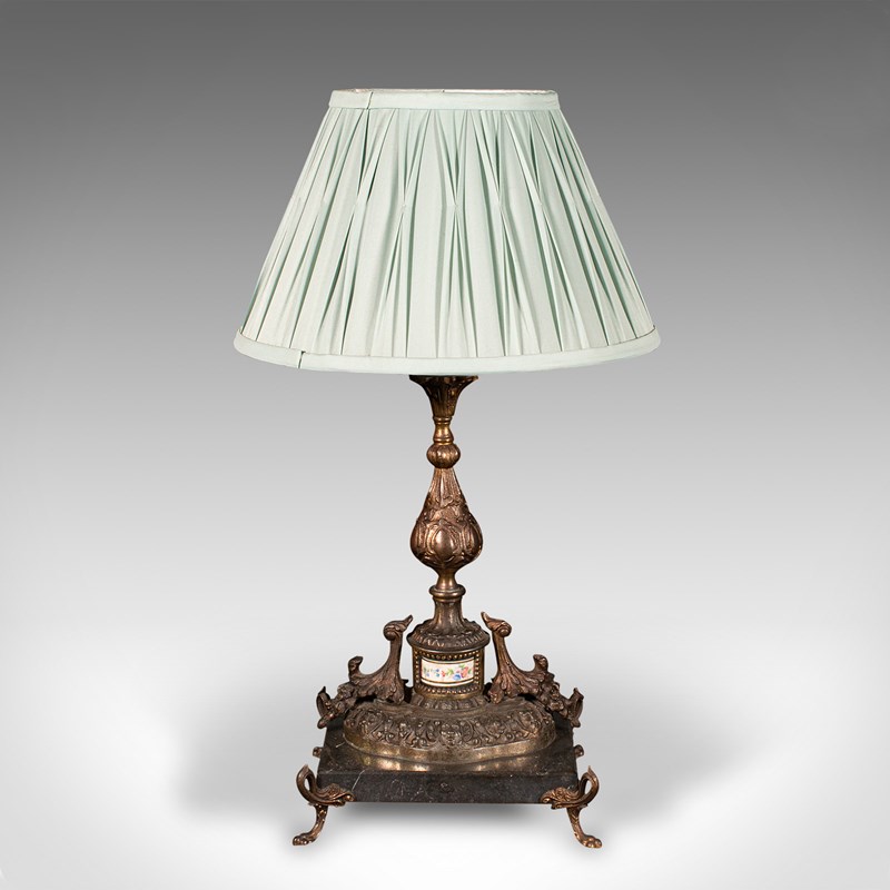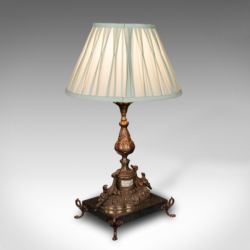 Antique Table Lamp, French, Gilt Metal, Marble, Side Light, Edwardian, C.1910