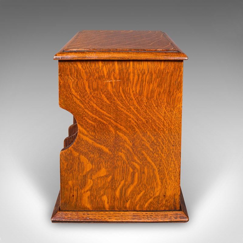This is an antique telegram case. An English, oak letter organiser or stationery box, dating to the late Victorian period, circa 1900. A delightful example of period craftsmanship, with fine figuring and superb practicality.