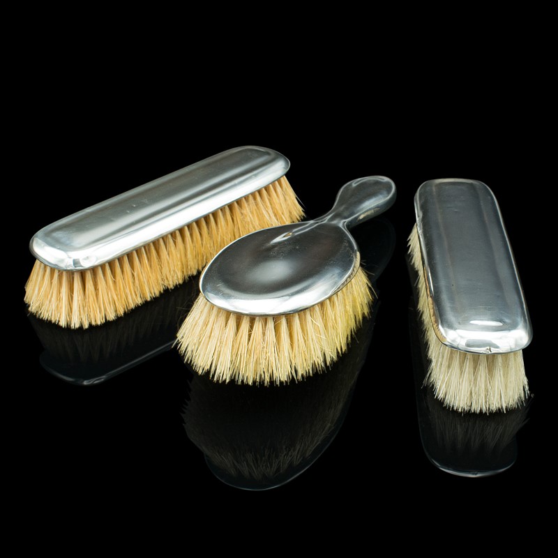 Trio of tactile dressing table brushes with fine bristles