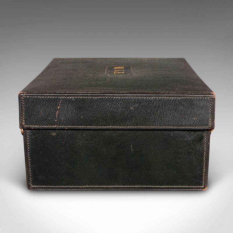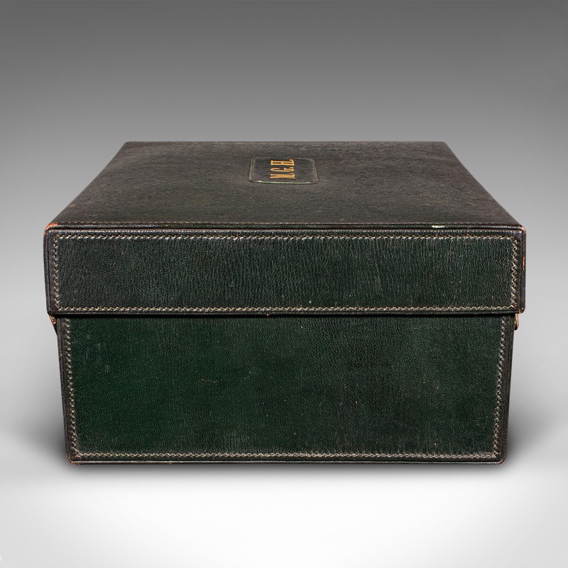 Antique Travelling Vanity Case, English, Leather, Silver, Dressing Table Box