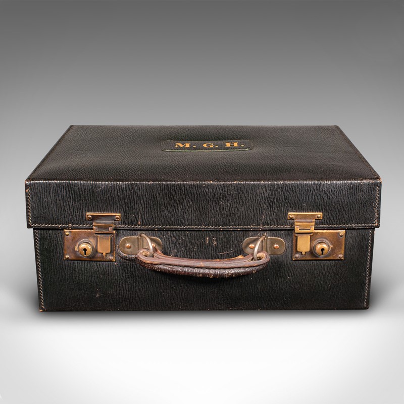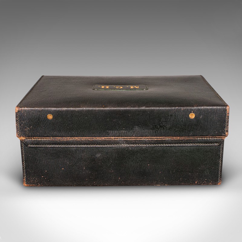 Monogram to lid in gilt tooling with the initials M.G.H.