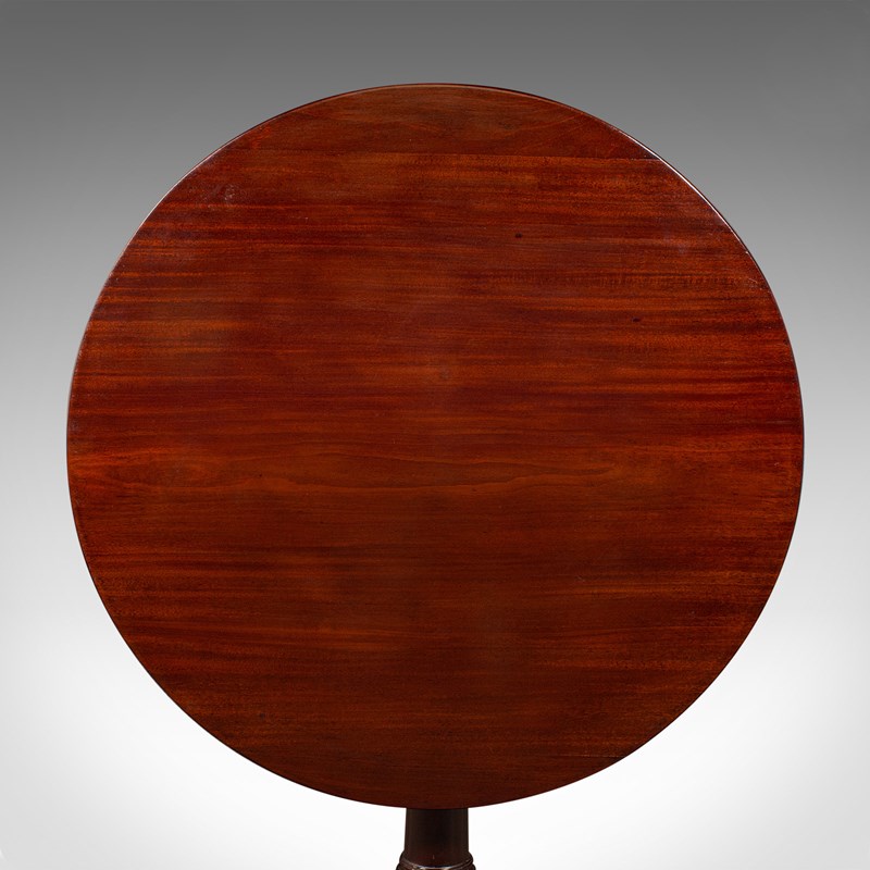 This is a superb Georgian mahogany tripod table, distinguished by its birdcage mount and tilt-top practicality. Solid joints and construction, delivered ready for the home.