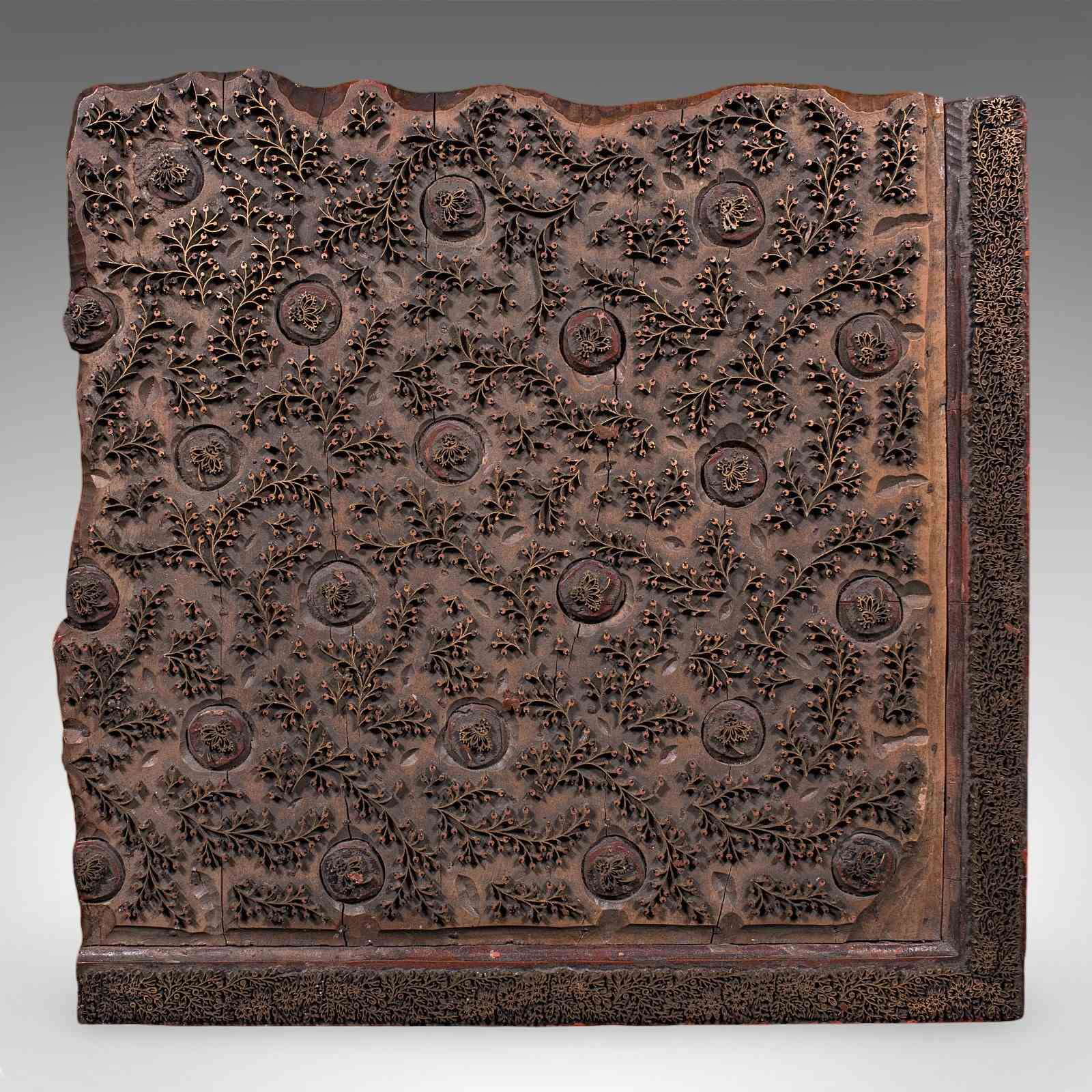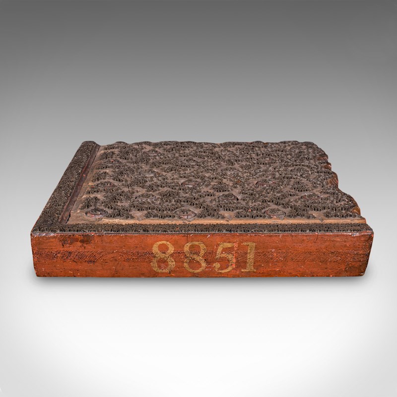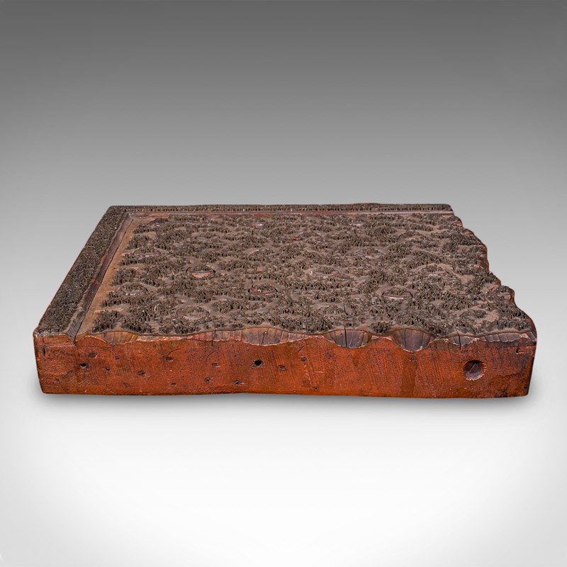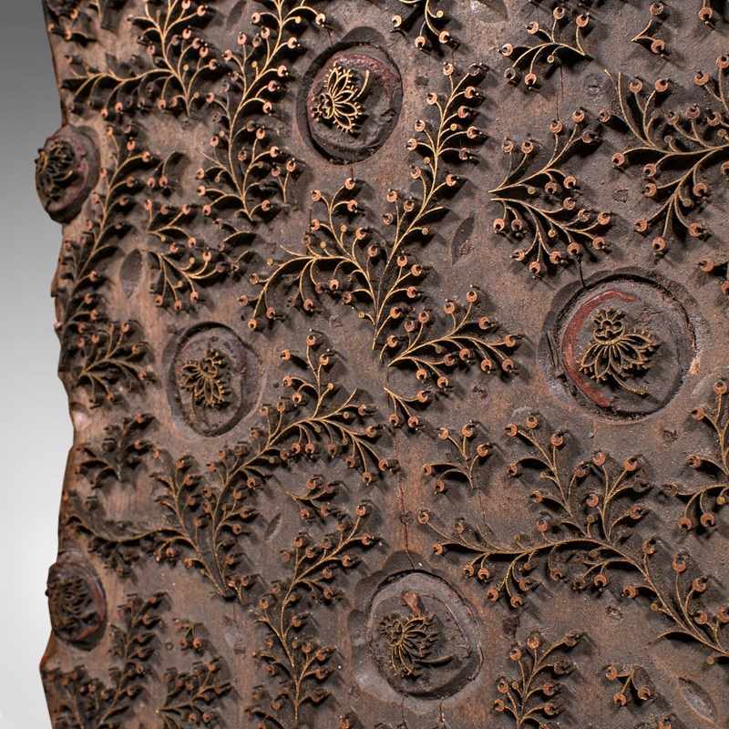This is a superb antique textile printing block, with a striking foliate pattern. Would offer superb display appeal in a retail space or stylish home. Delivered ready to display.