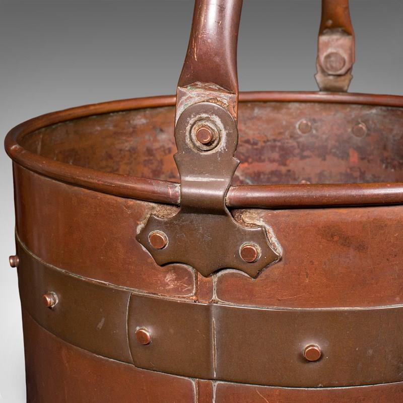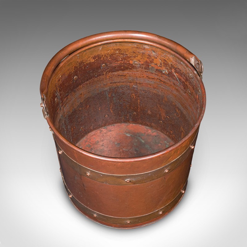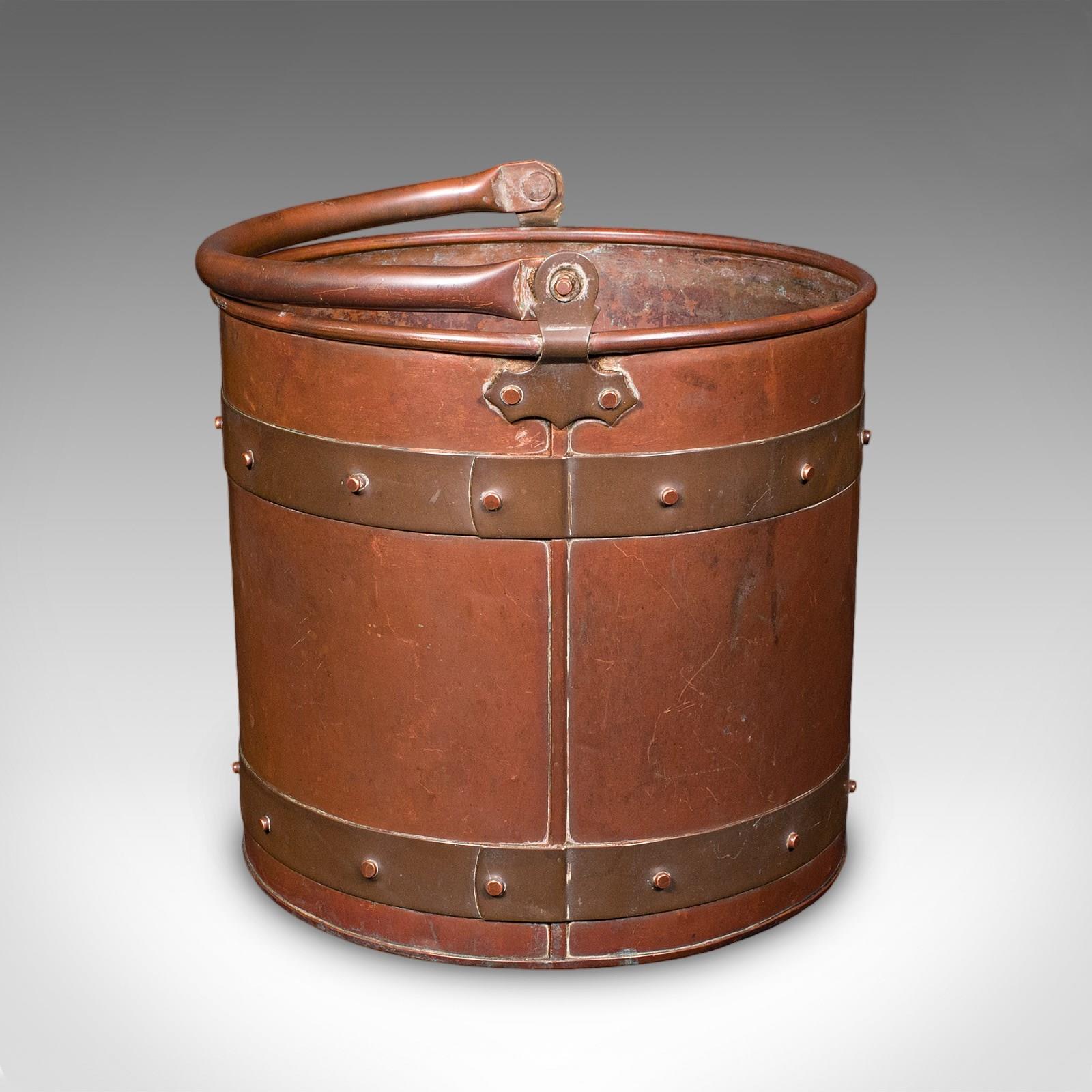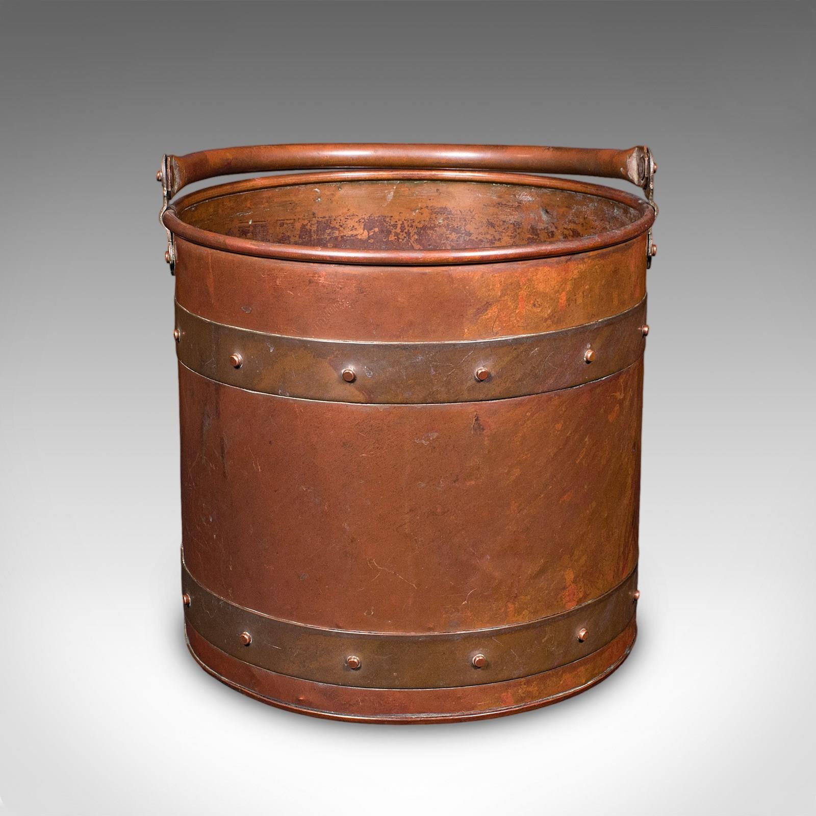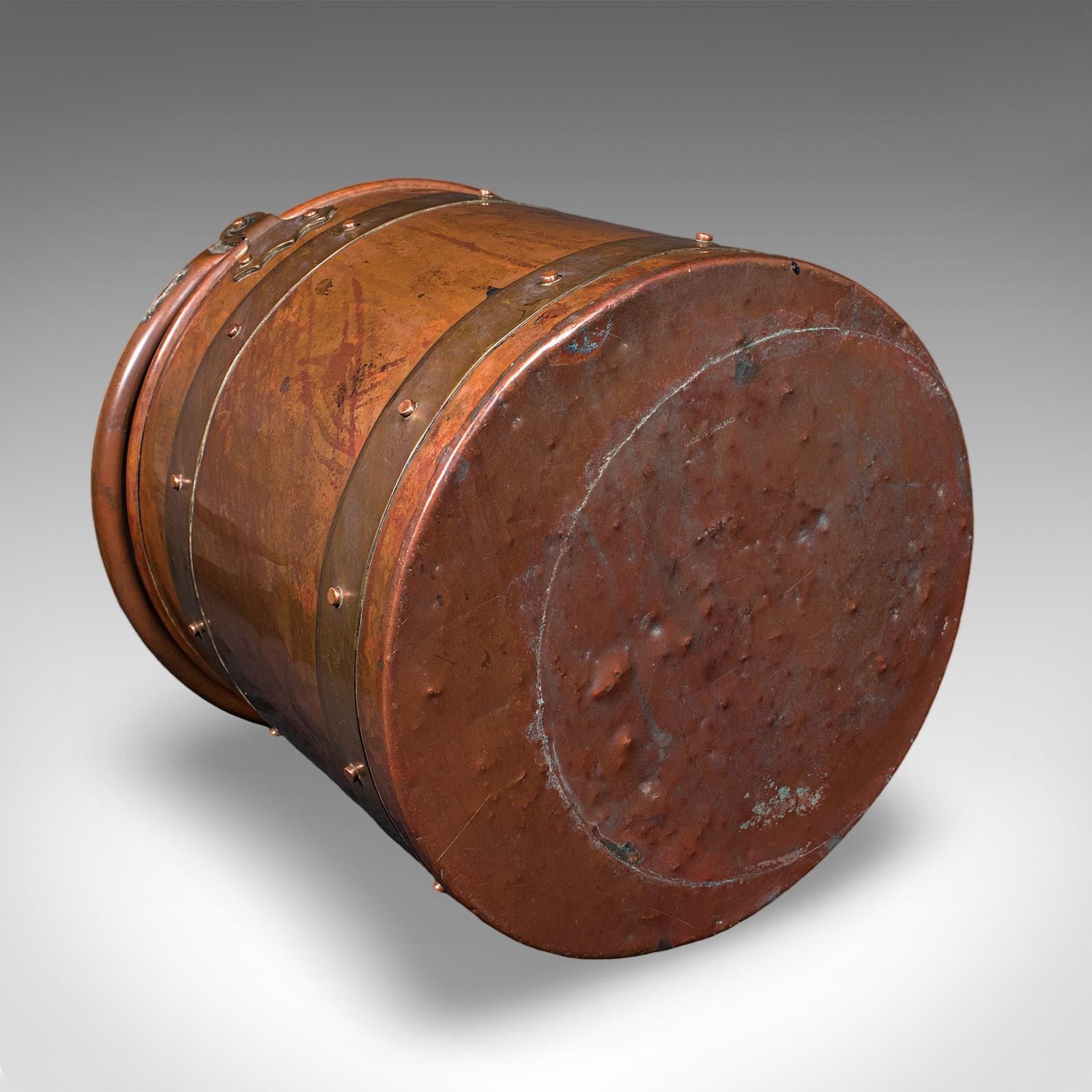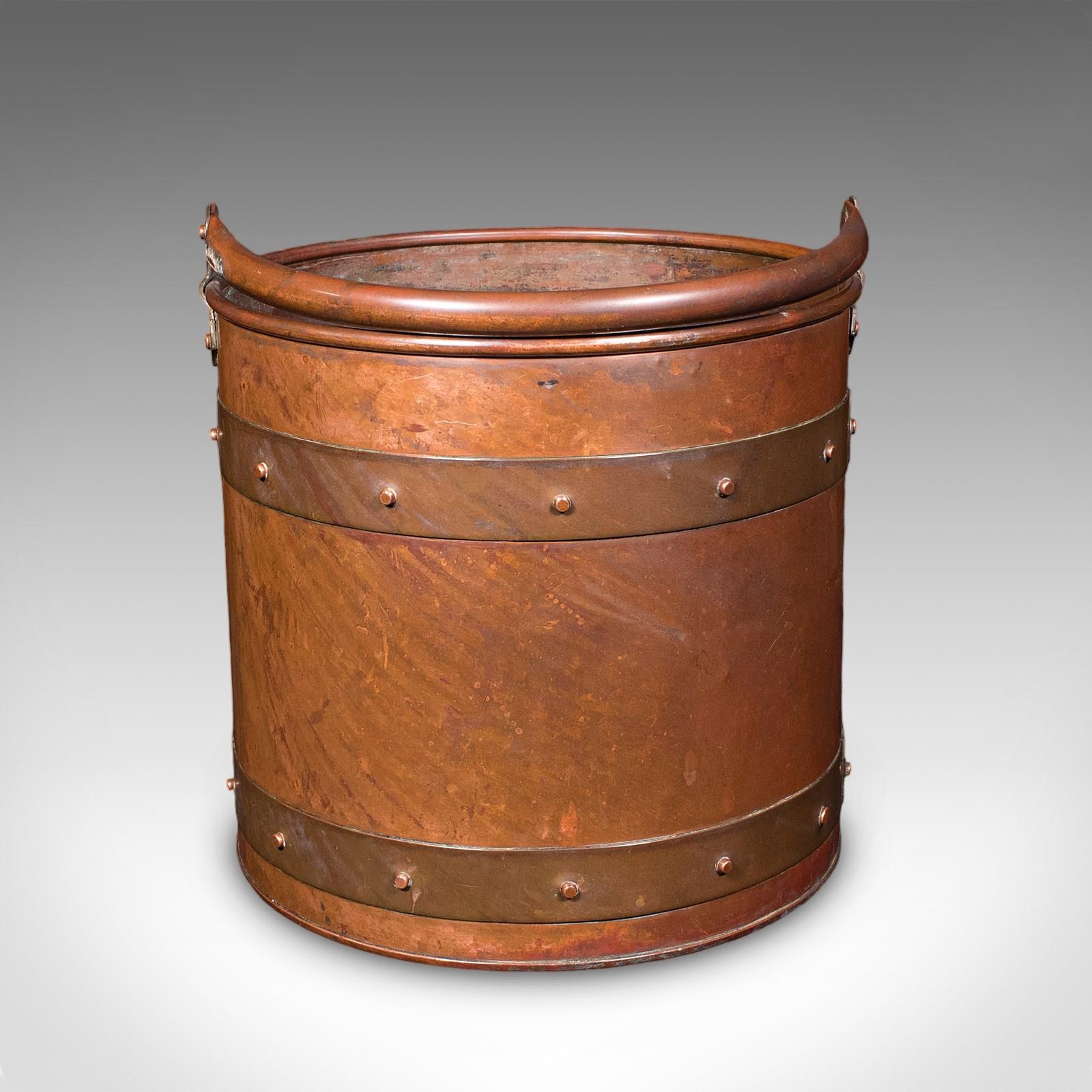 This is an antique waste paper basket. An English, copper study or home office bin, dating to the Edwardian, circa 1910. A superb example of Cornish craftsmanship with a delightful copper finish.