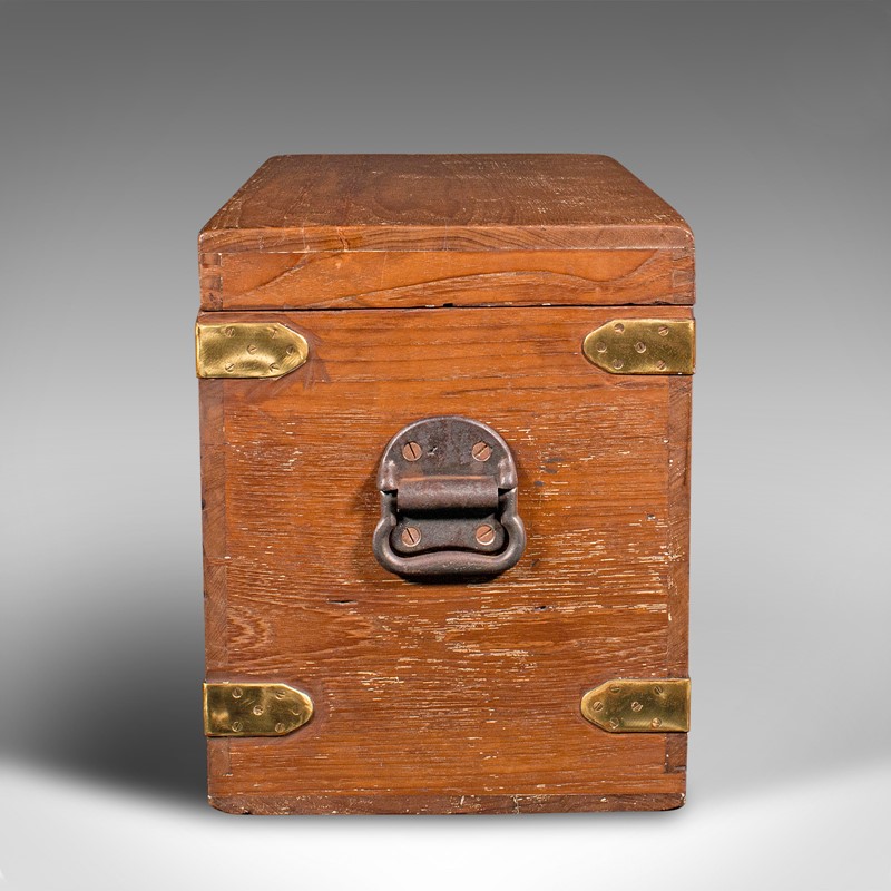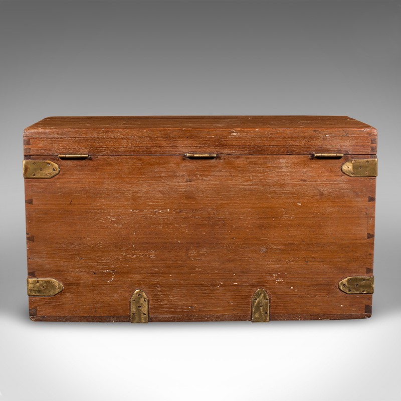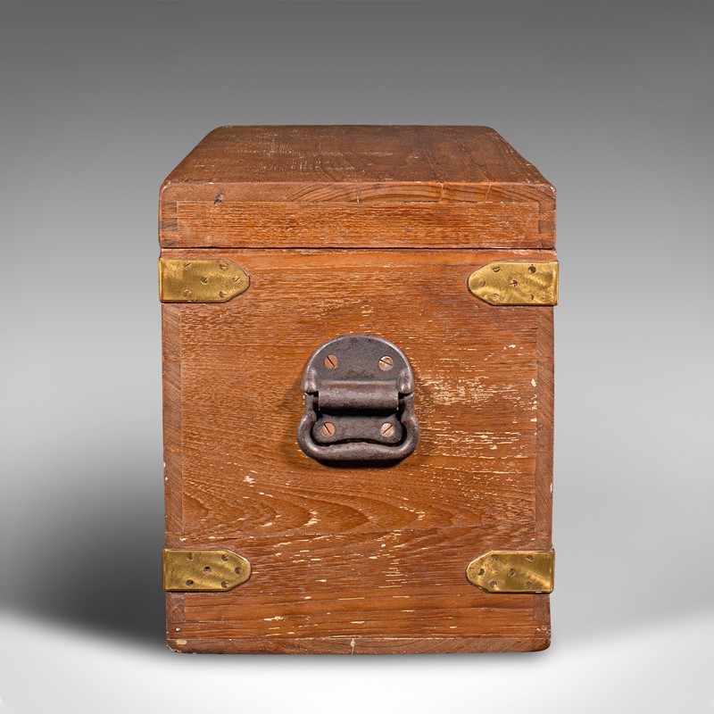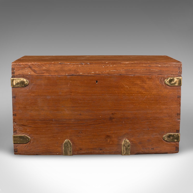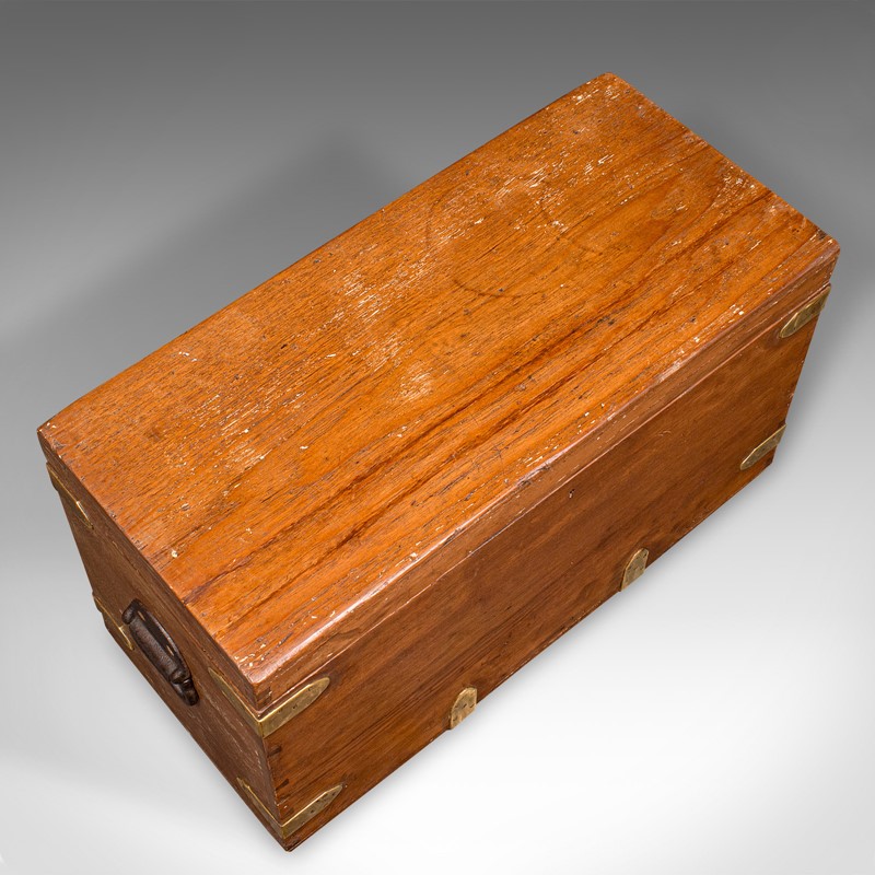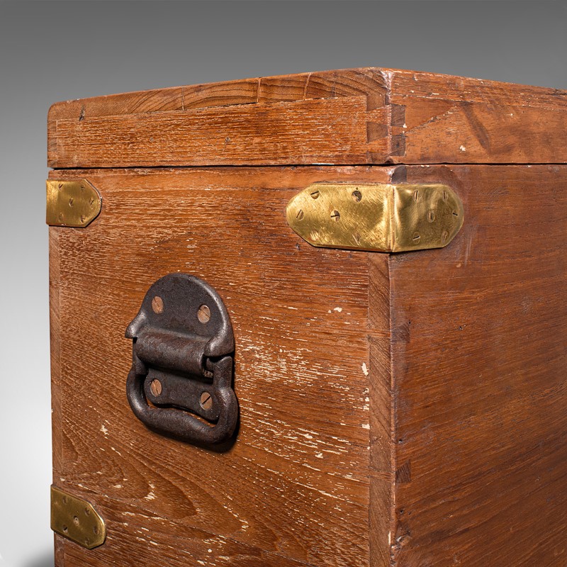 Antique Workman's Tool Chest, English, Teak, Brass, Craftsman's Trunk, Victorian