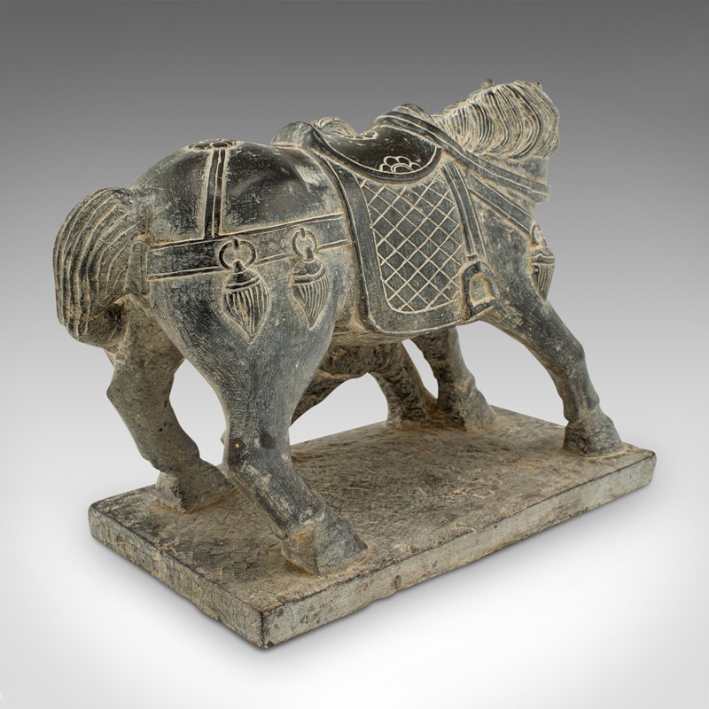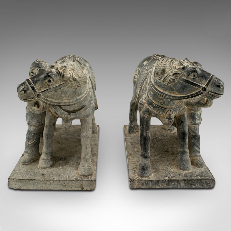 Heavy Pair Of Vintage Horse Figures, Oriental Stone, Fireside Ornament, Bookends