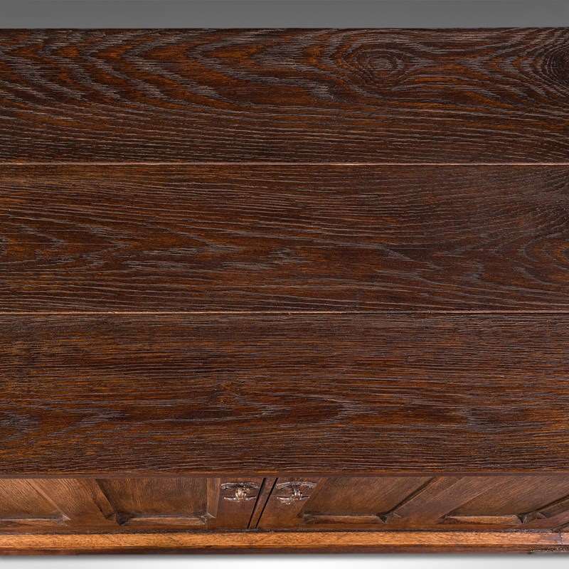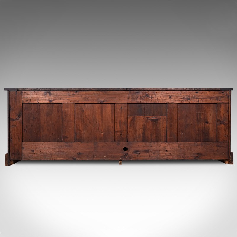 Large Antique Dresser Base, English, Oak, Gothic Revival, Window Seat, Victorian