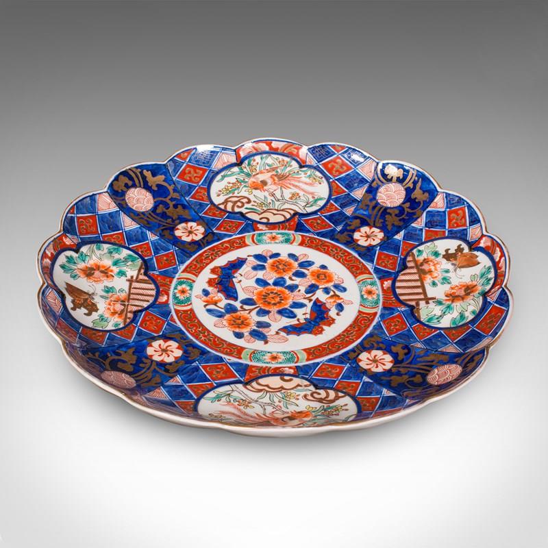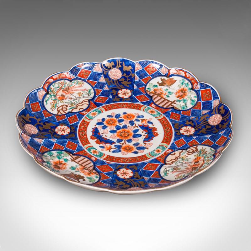 Large Antique Imari Fruit Display Plate, Japanese, Ceramic Platter, Victorian