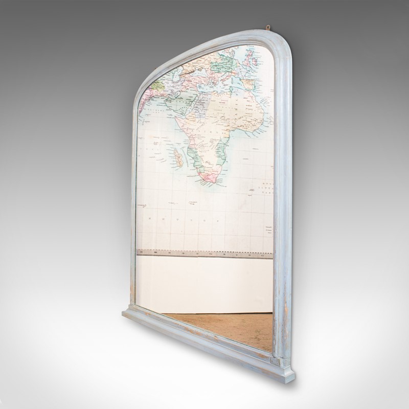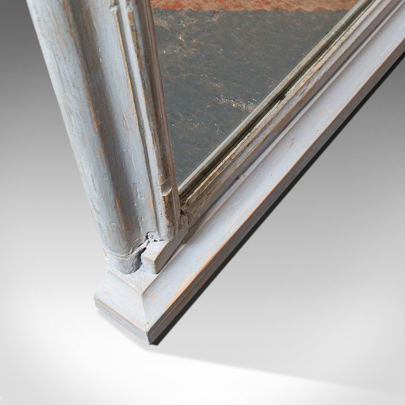 This is a large antique overmantel mirror. An English, painted living room or bedroom mirror, dating to the late Victorian period and later, circa 1900.
