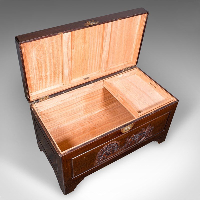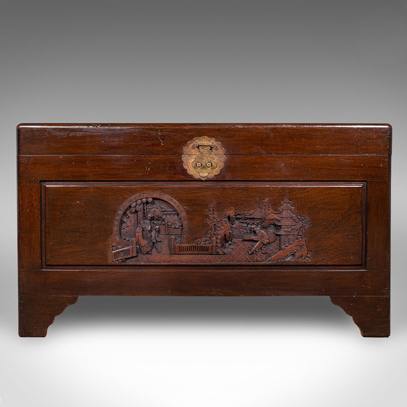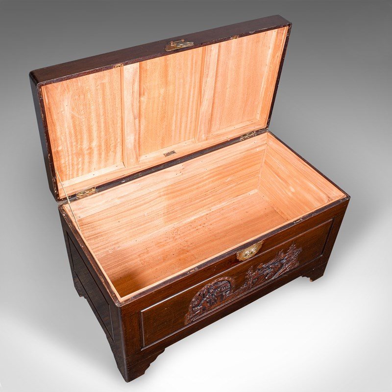 Large Vintage Carved Chest, Hong Kong, Camphorwood, Storage Trunk, Mid Century